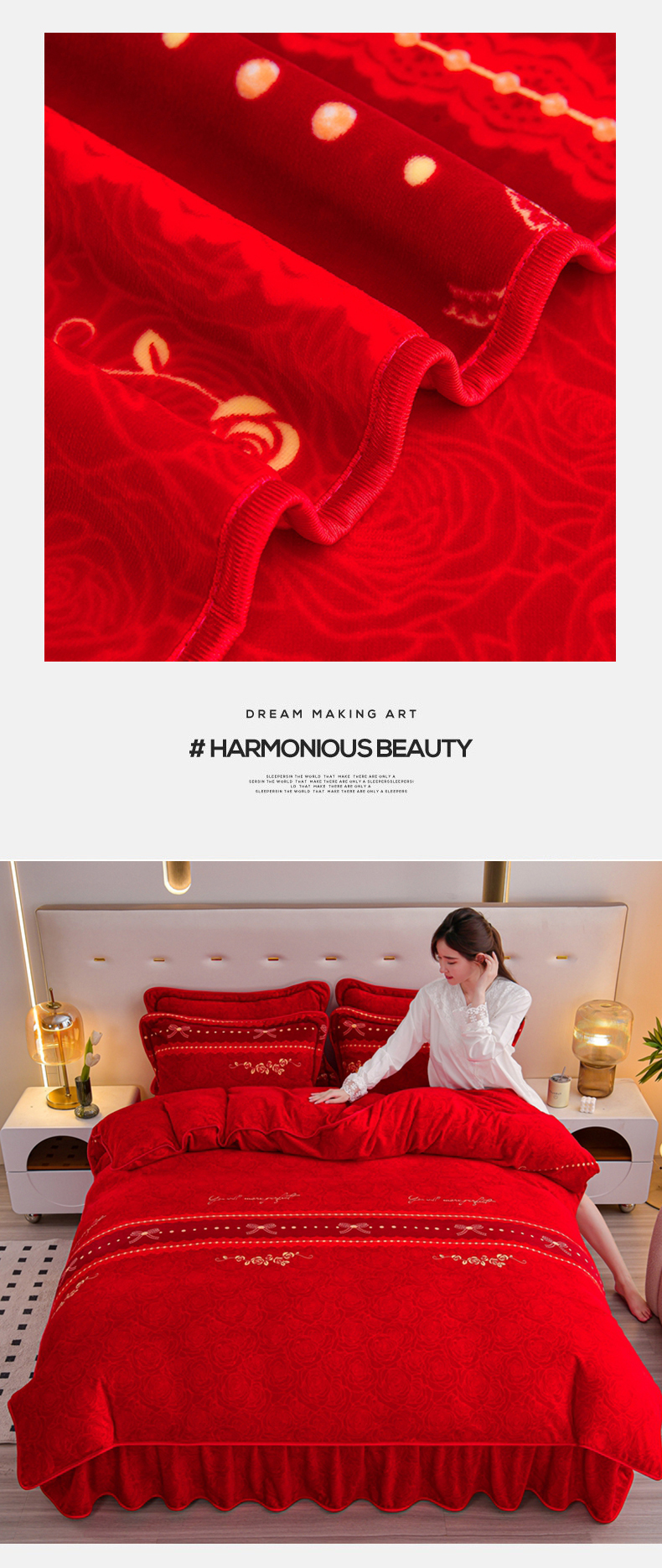商品名称:芯诗曼 2025直播高克重牛奶绒四件套法莱绒金貂貂狐保暖单被套 今生缘