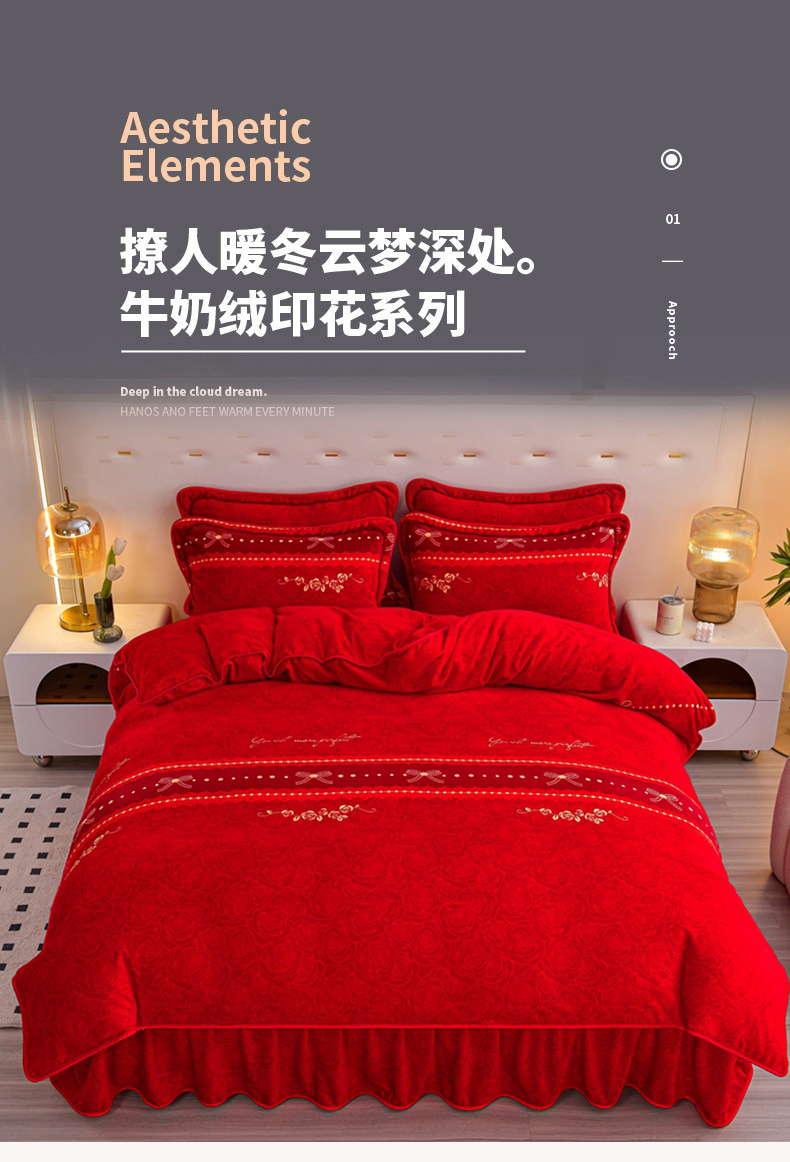 芯诗曼2025新款8.5斤直播热款高克重牛奶绒法莱绒水晶金貂法莱绒四件套幸运一生,幸运一生,雍容华贵