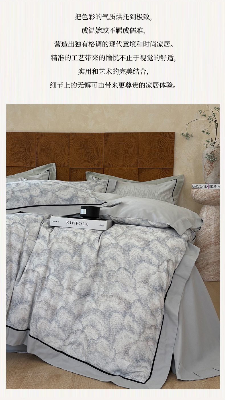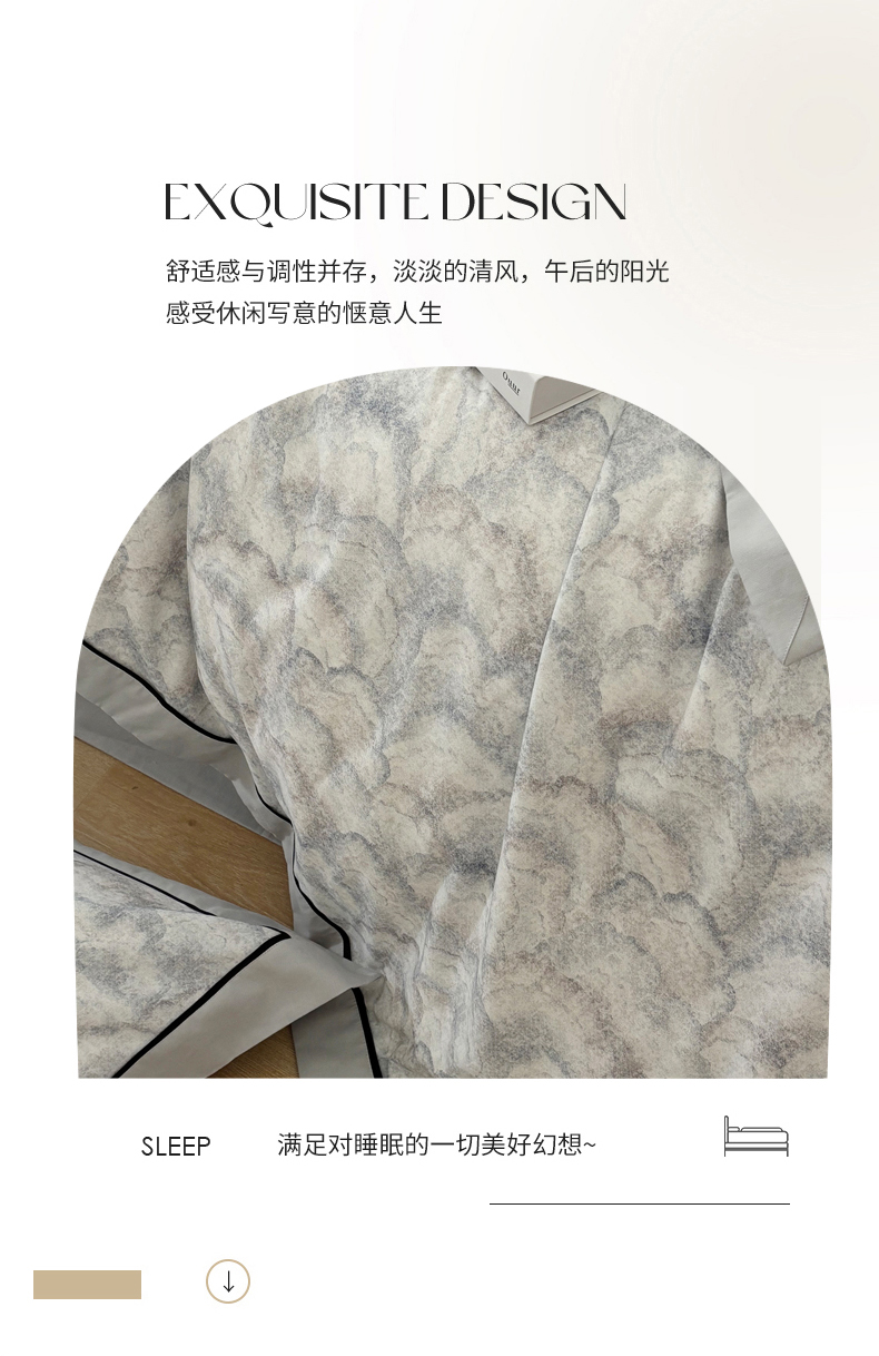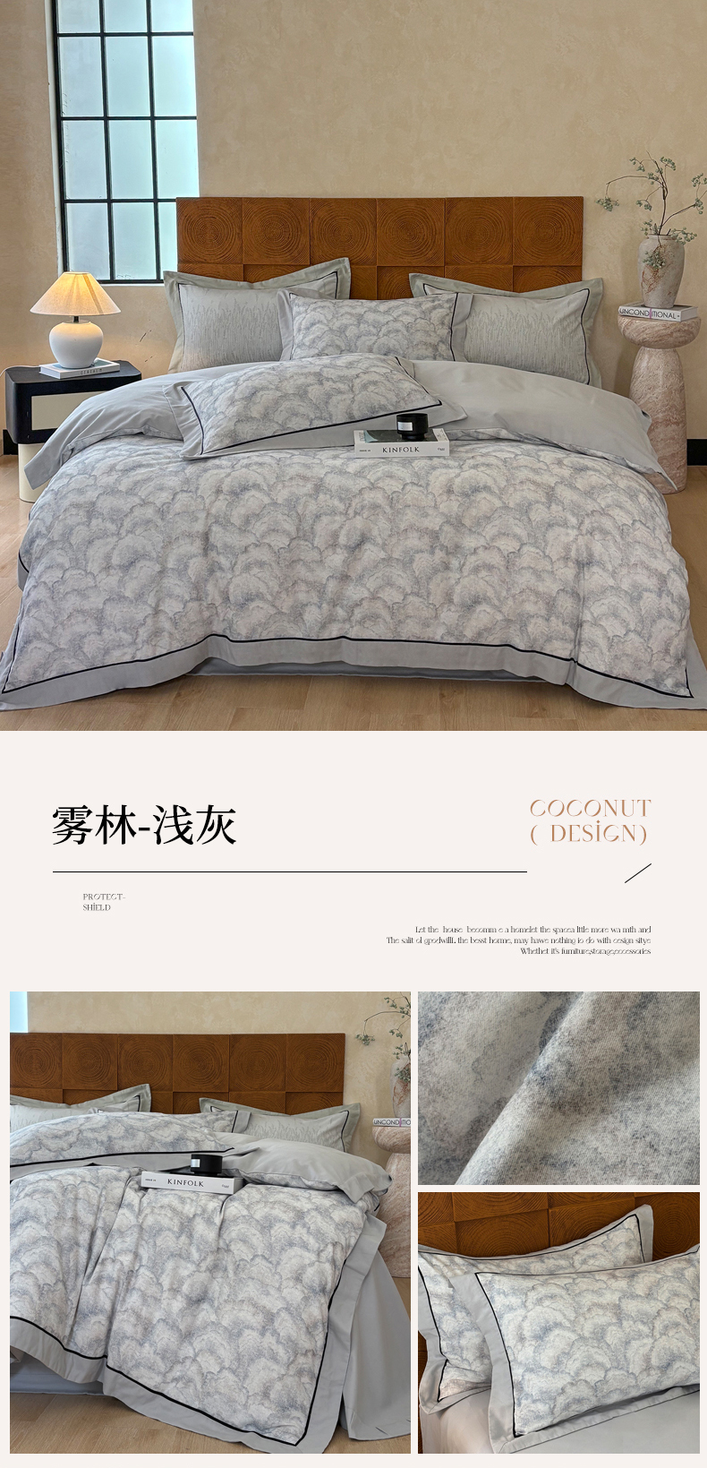 商品名称:嘉汀兰2025新款全棉臻品磨毛轻奢时尚秋冬加厚四件套-拼角款 雾林-浅灰