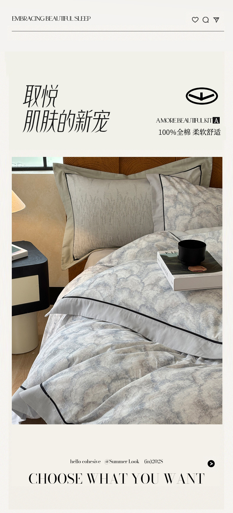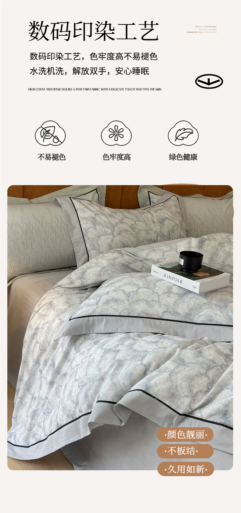 (总)嘉汀兰家居 2024新款100S长绒棉数码印花四件套系列,陌上花开-绿,纤羽-蓝