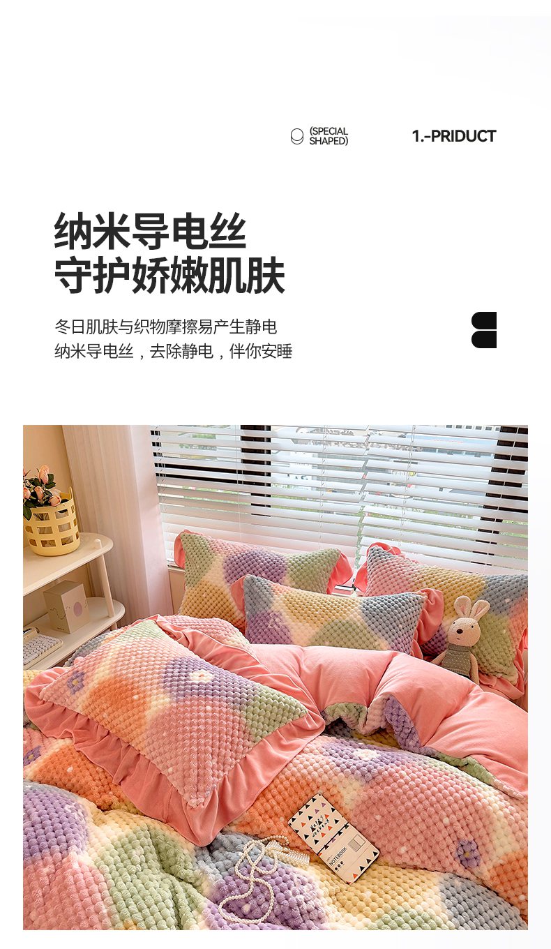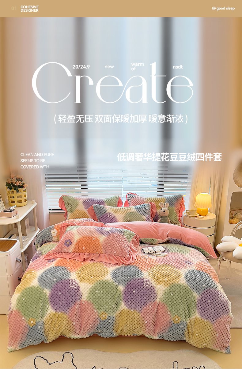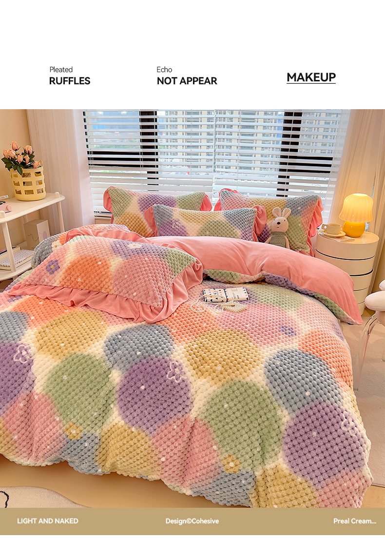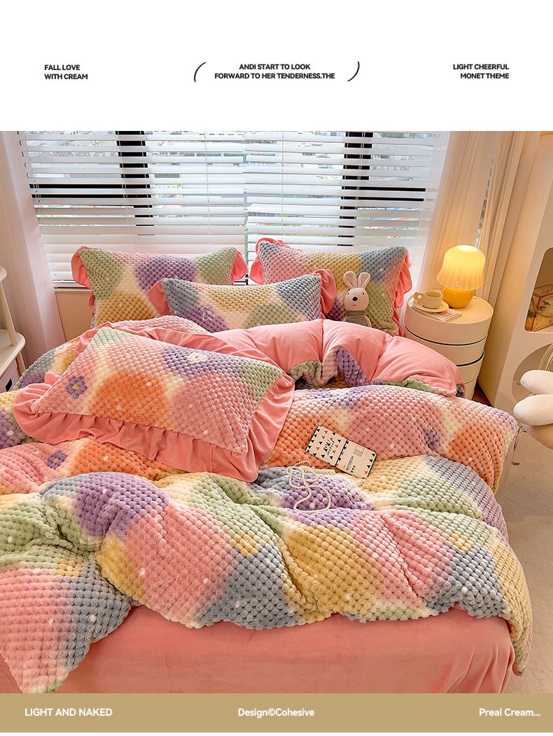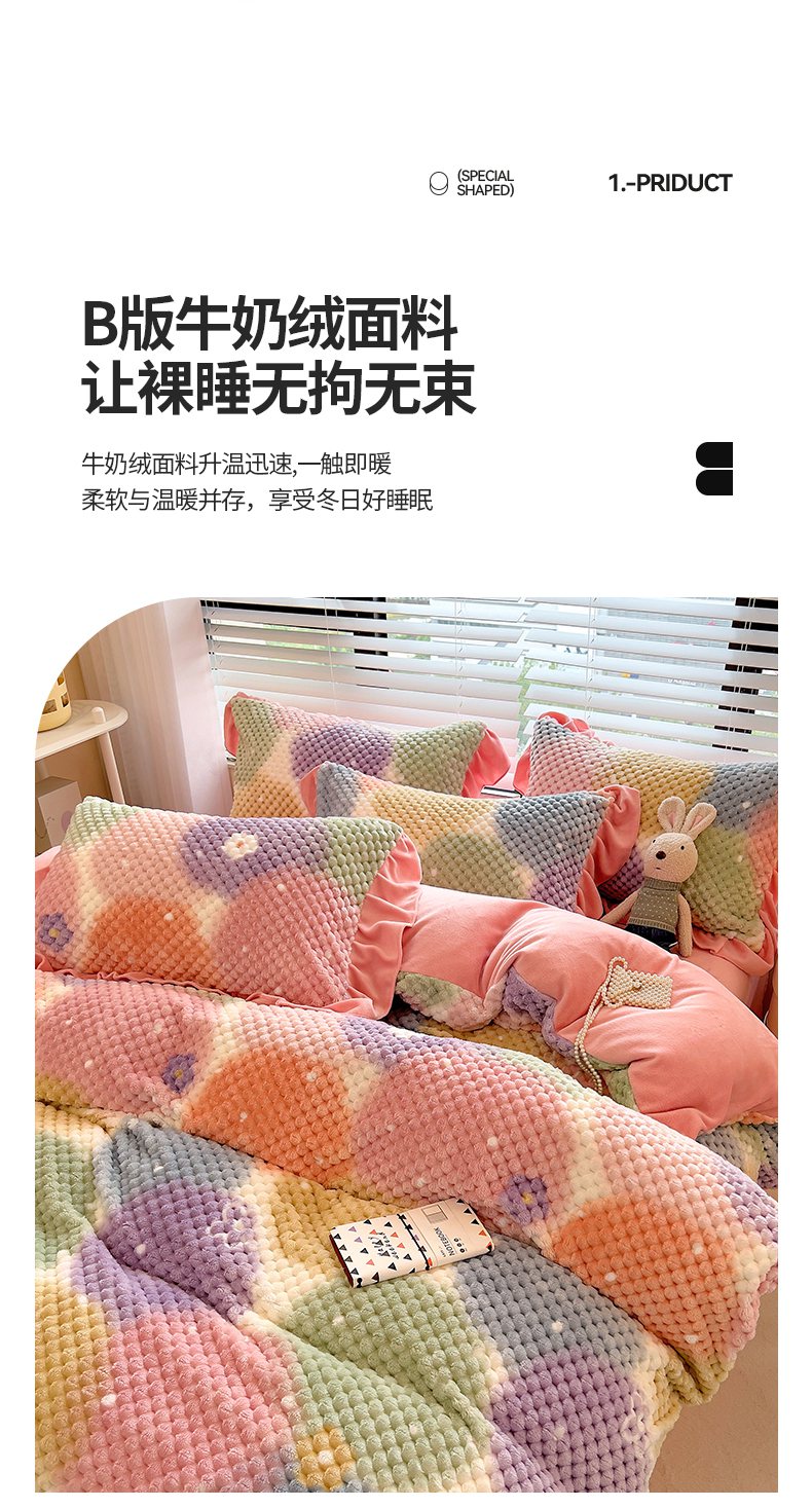 商品名称:摩妮卡 2025新款提花豆豆绒卡通印花牛奶绒四件套 颜淡
