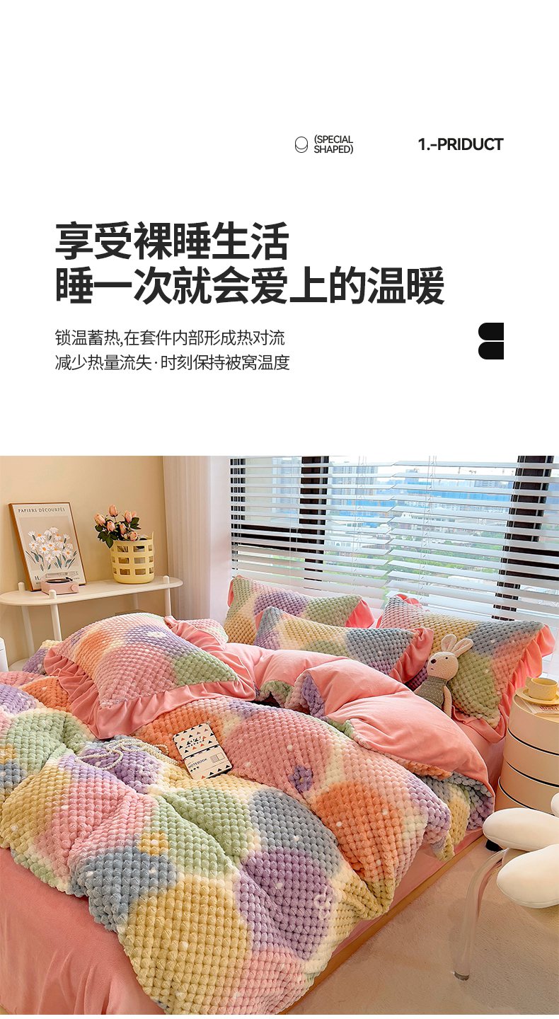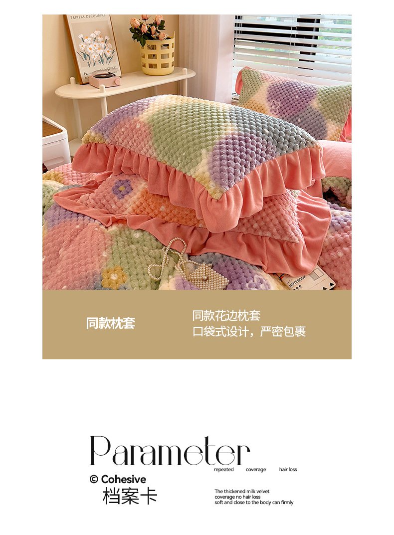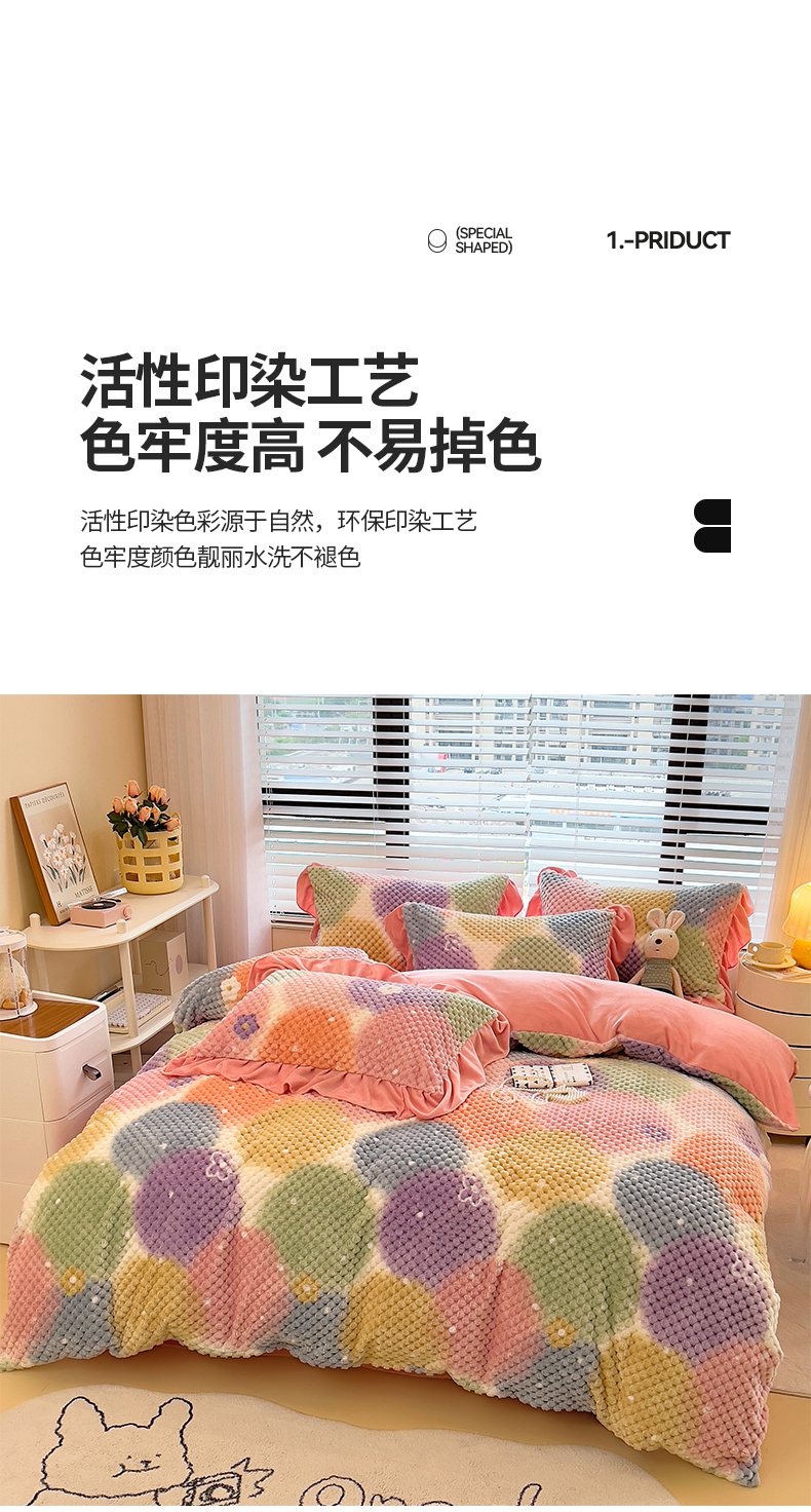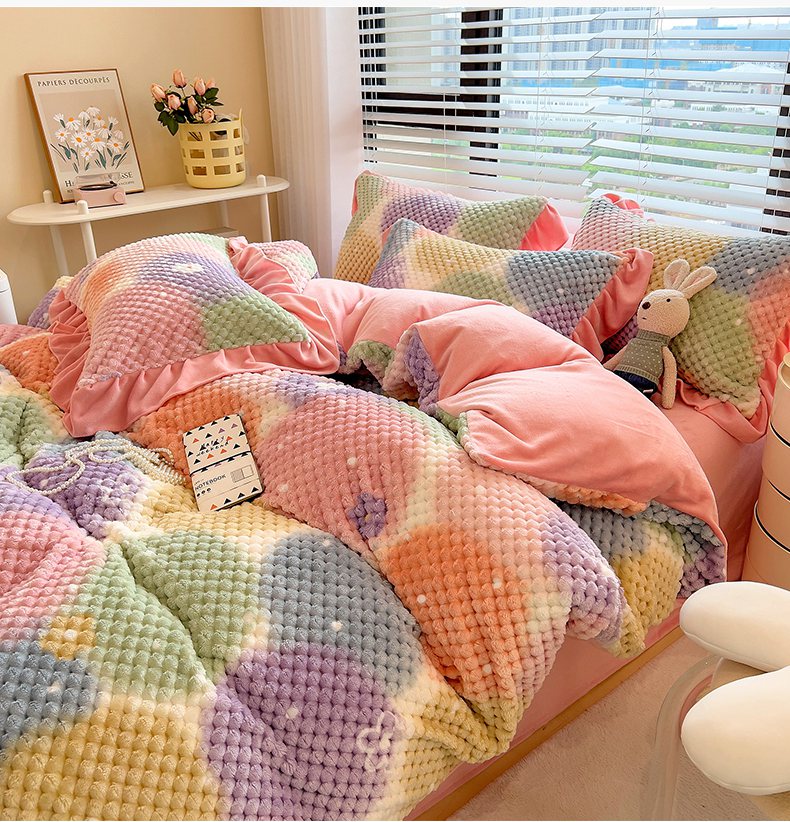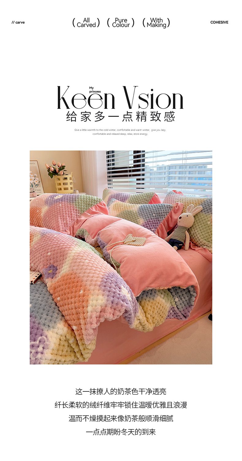 商品名称:摩妮卡 2025新款提花豆豆绒卡通印花牛奶绒四件套 颜淡