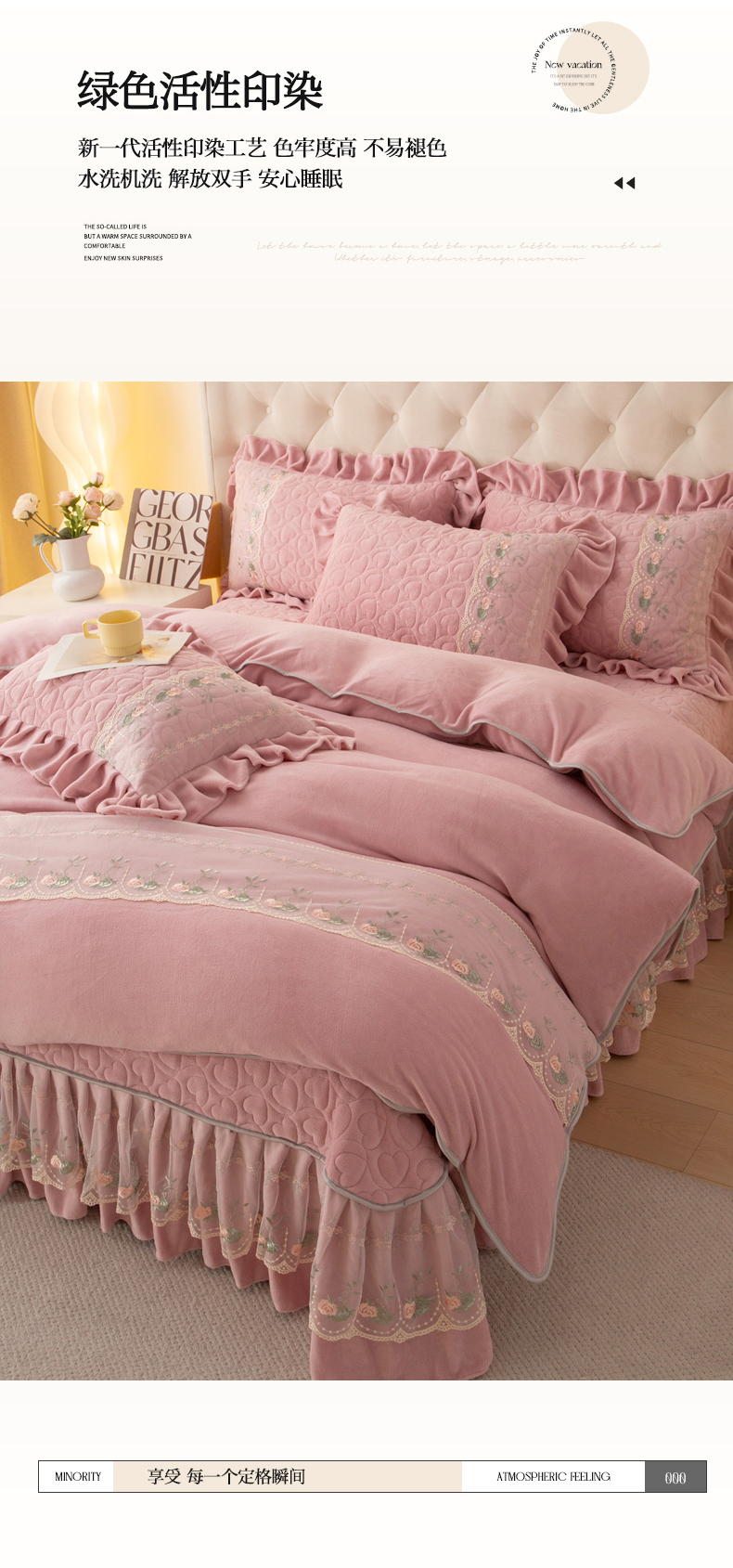 商品名称:能好家纺 2025新款牛奶绒刺绣床盖四件套 果绿