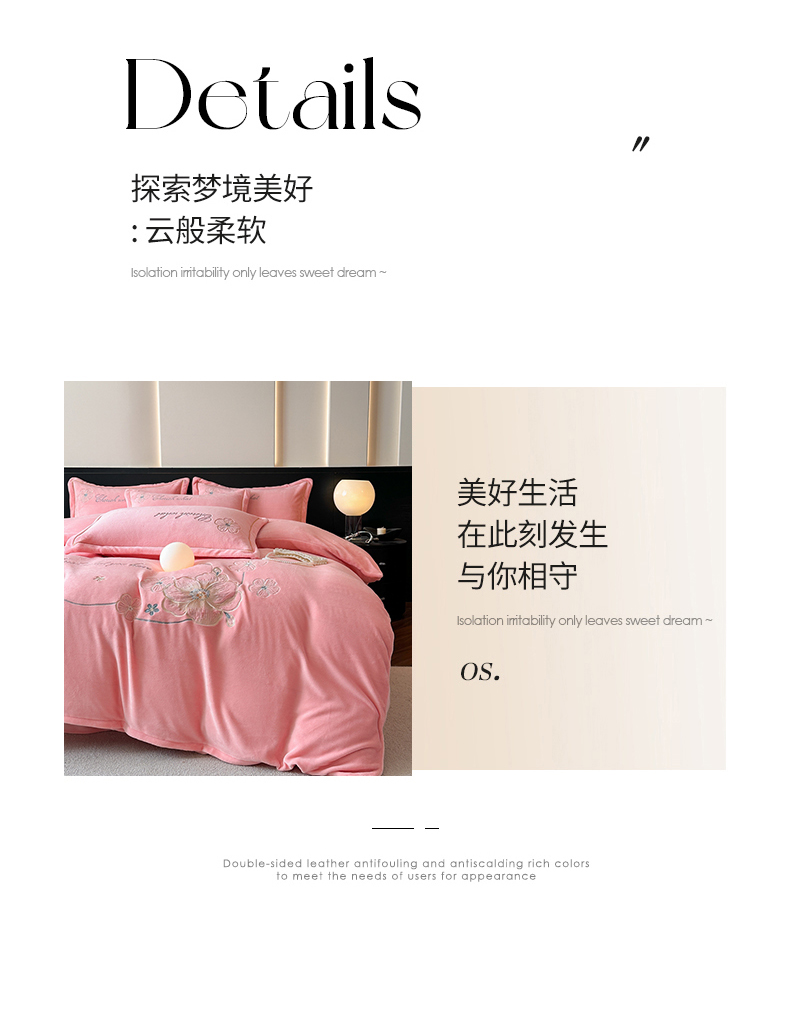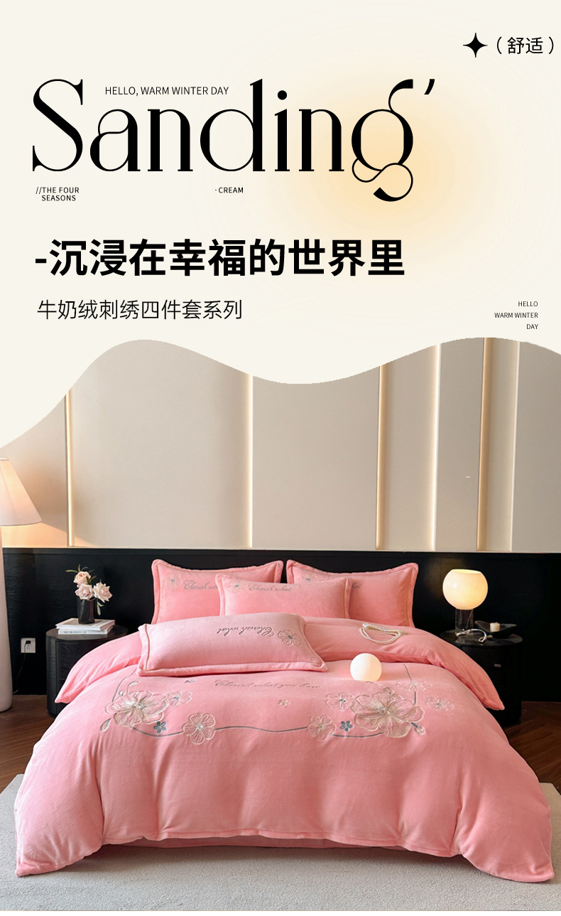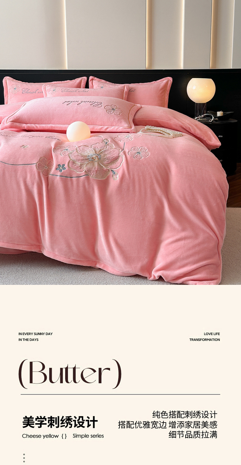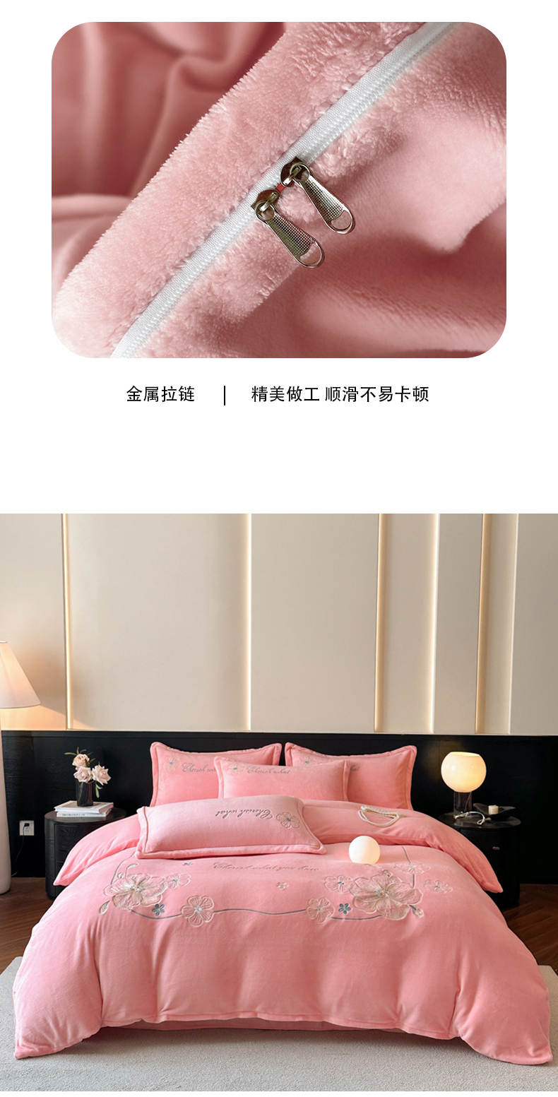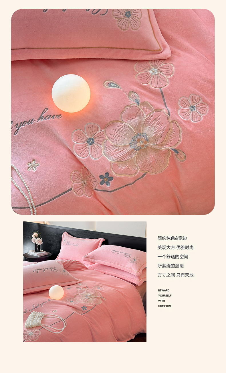 诺梵家纺 2025新款8斤牛奶绒刺绣绣花四件套 绮梦-粉