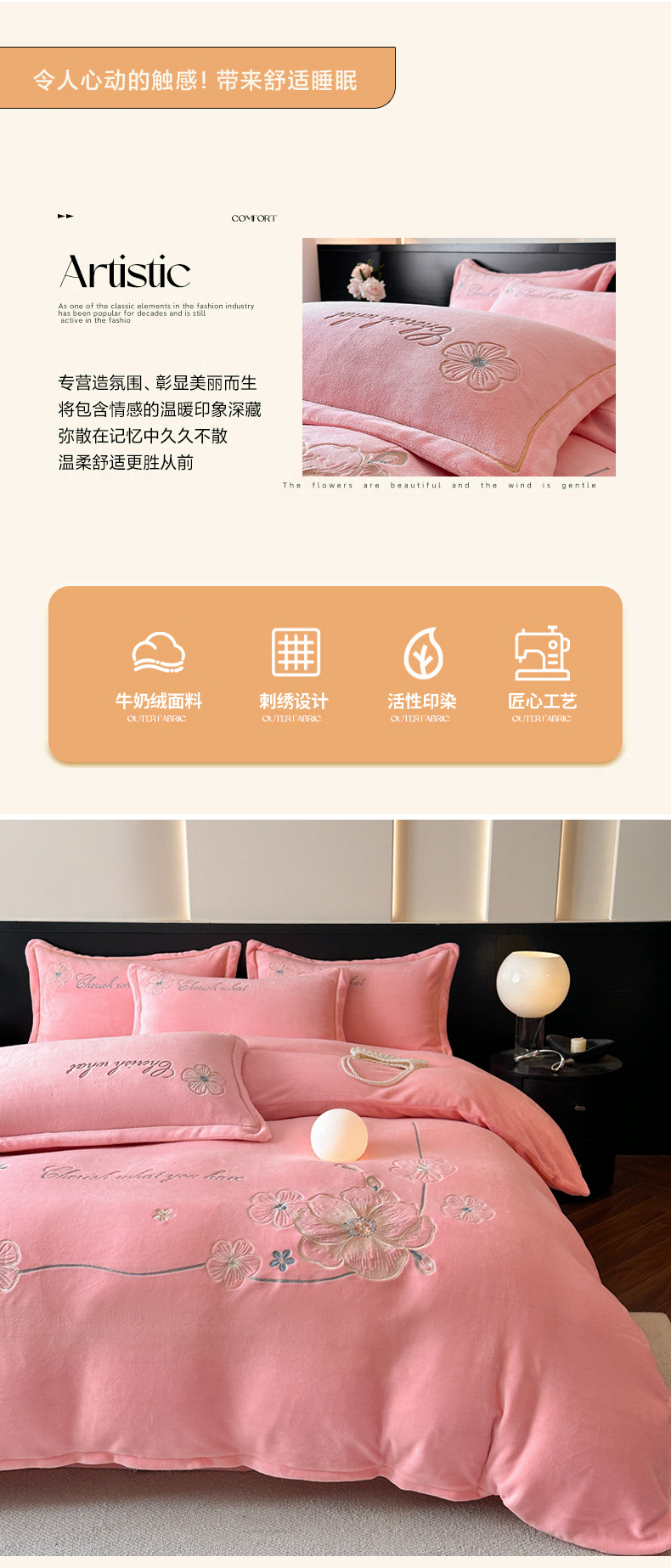 商品名称:诺梵家纺 2025新款8斤牛奶绒刺绣绣花四件套 绮梦-粉