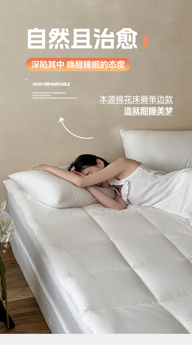 商品名称:三味舒屋 2025新款亲肤舒适简约本素棉花床褥 本素棉花床褥单边款