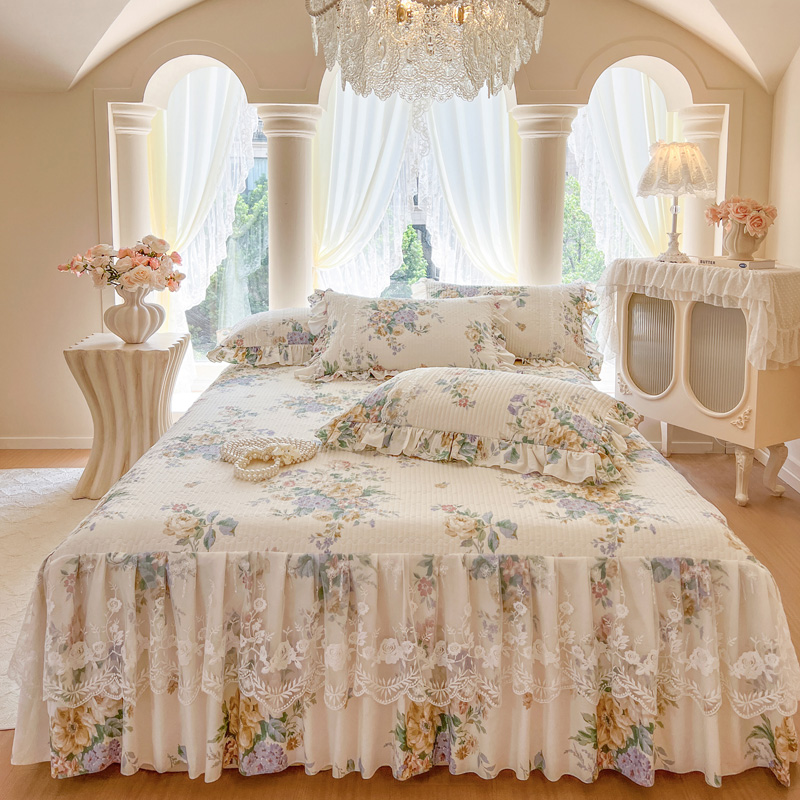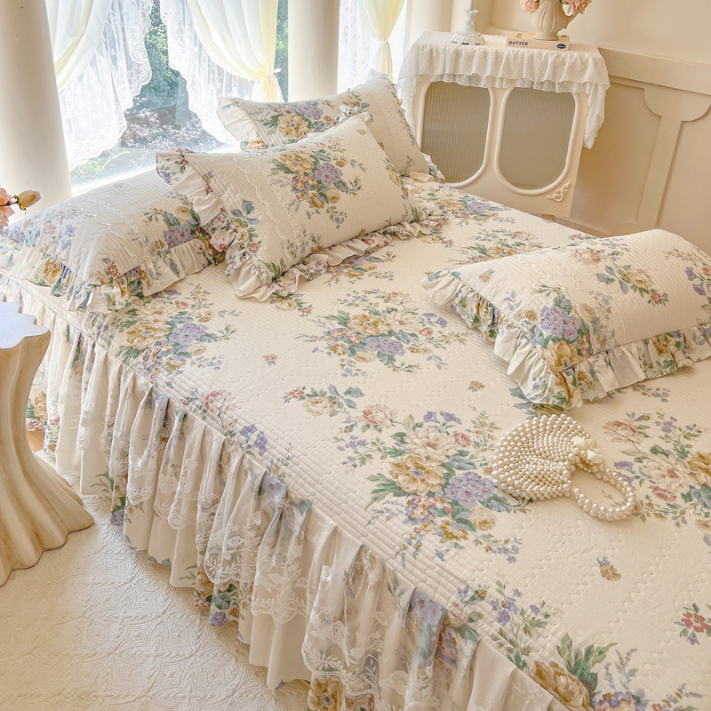 瑞宝 2025新款13372全棉印花花边床裙三件套 安娜花园