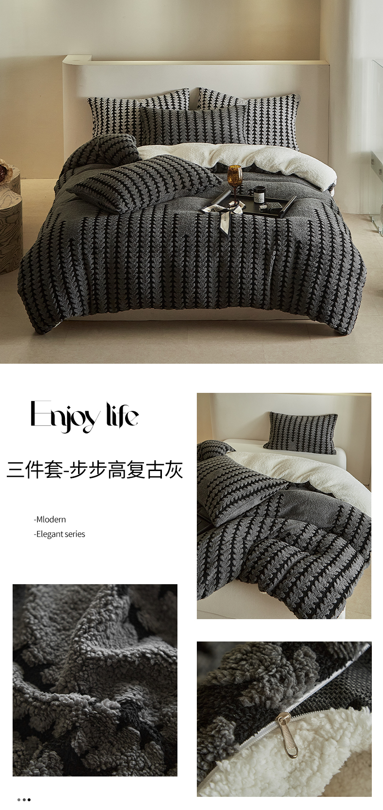 当前位置: 91家纺网 > 商品网购 > 毛毯休闲毯绒毯 > 毛毯 > 温宁家纺 2025新款步步高被套毯毛毯盖毯三件套单被套可配枕套 三件套-步步高复古灰