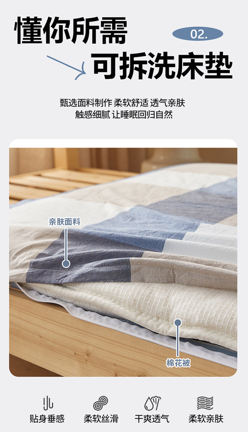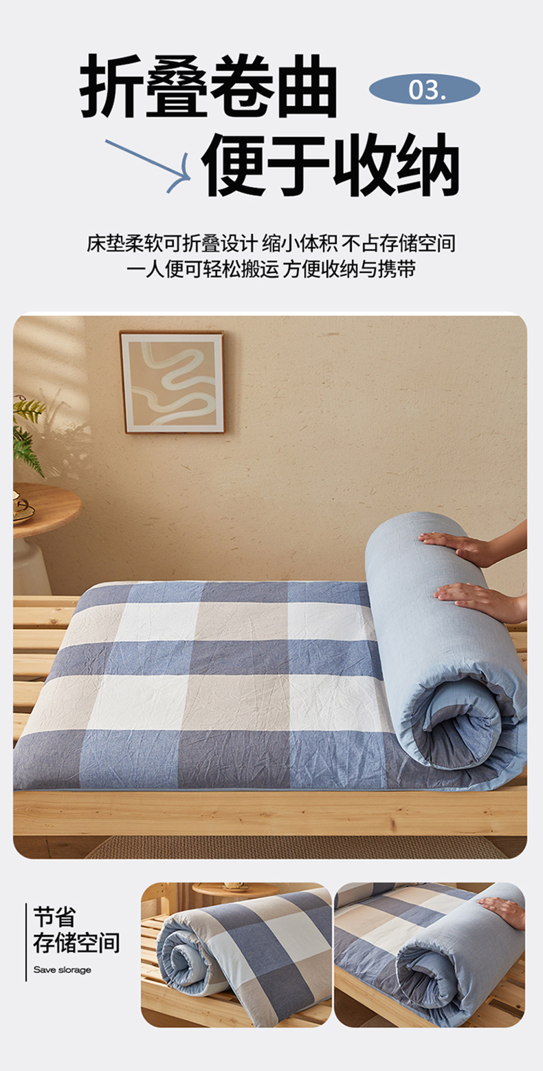 (总)悠米悠家 2025新款新疆棉花学生款可拆洗床垫,宾利兰格,高级灰格,格子控,灰色,极简绿格,简兮格,橘色小格,蓝小格,墨绿小格