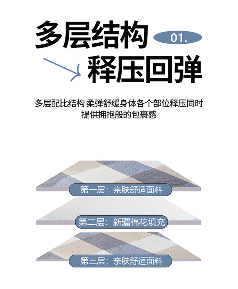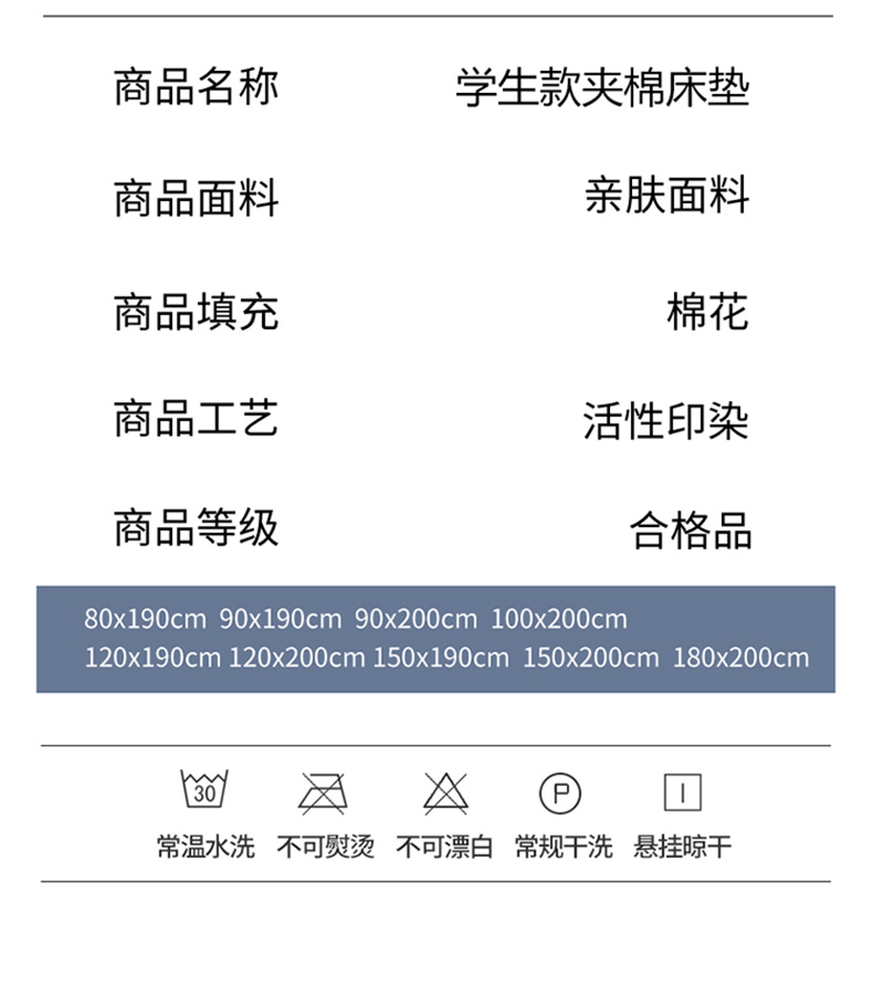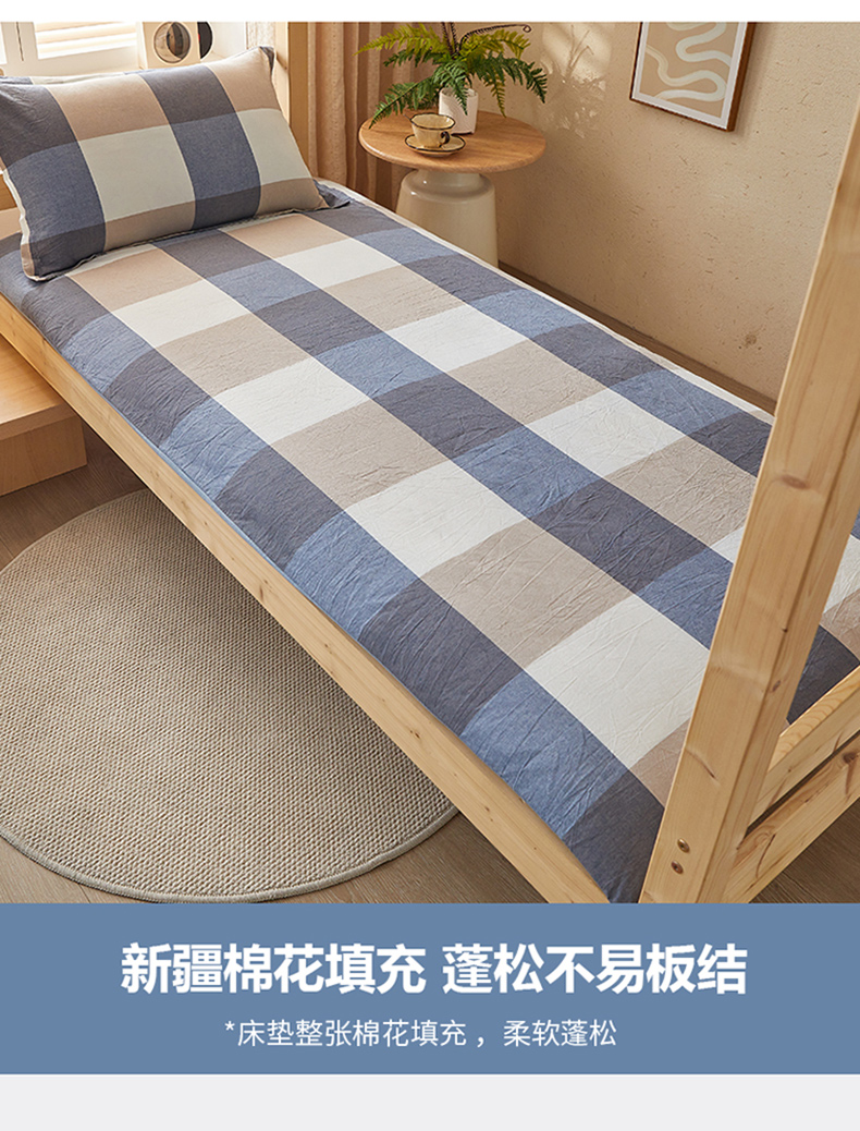 商品名称:悠米悠家 2025新款新疆棉花学生款可拆洗床垫 蓝大格