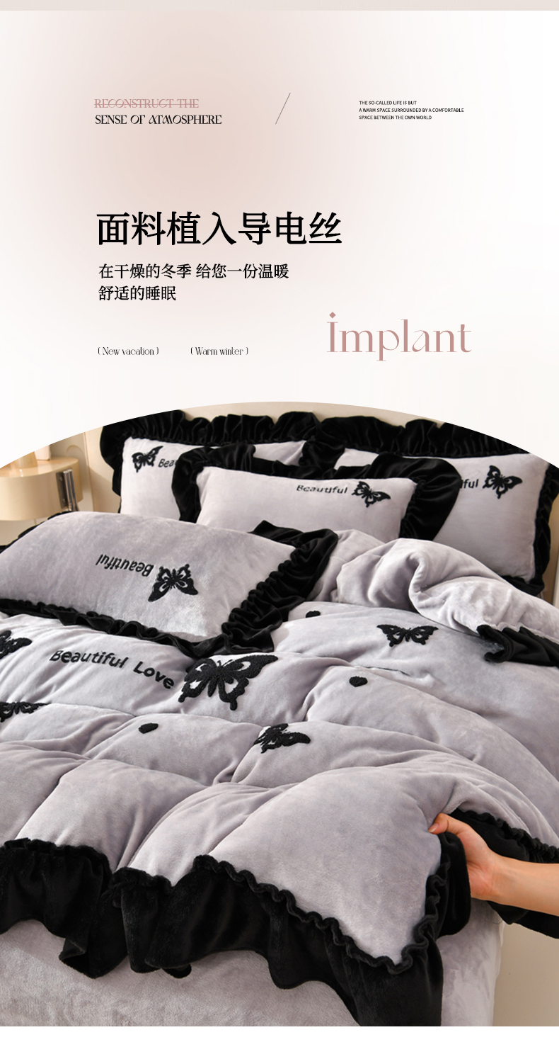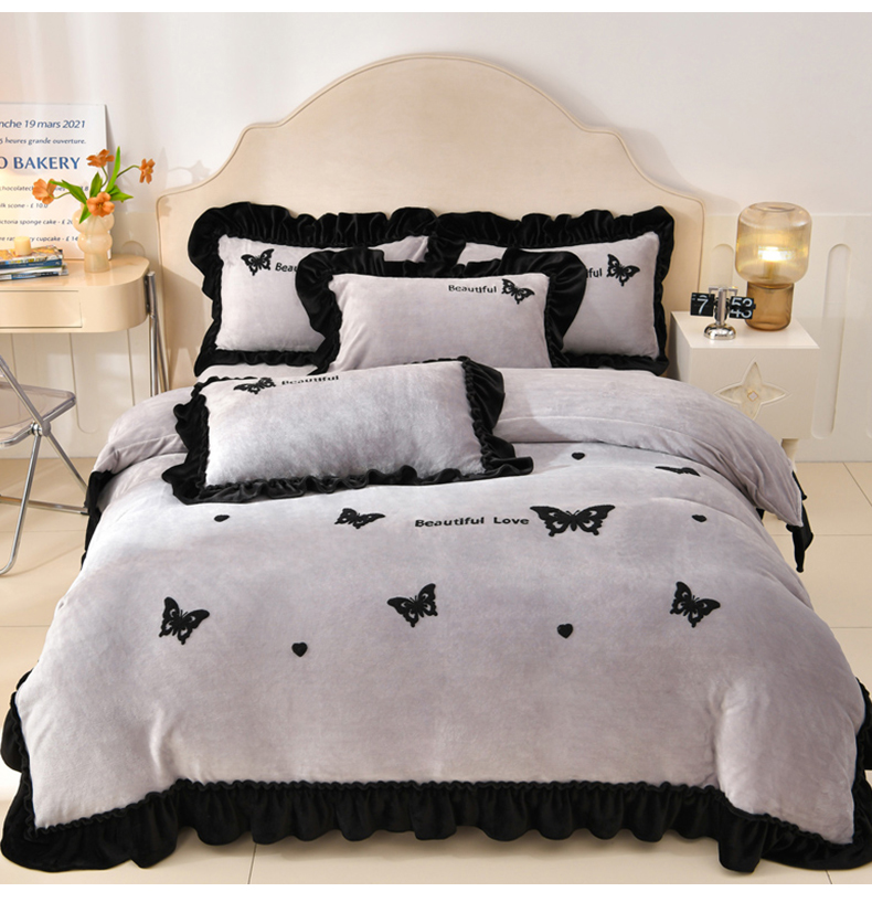 商品名称:梦之星 2025新款9斤毛巾绣韩式花边牛奶绒四件套 蝴蝶-灰