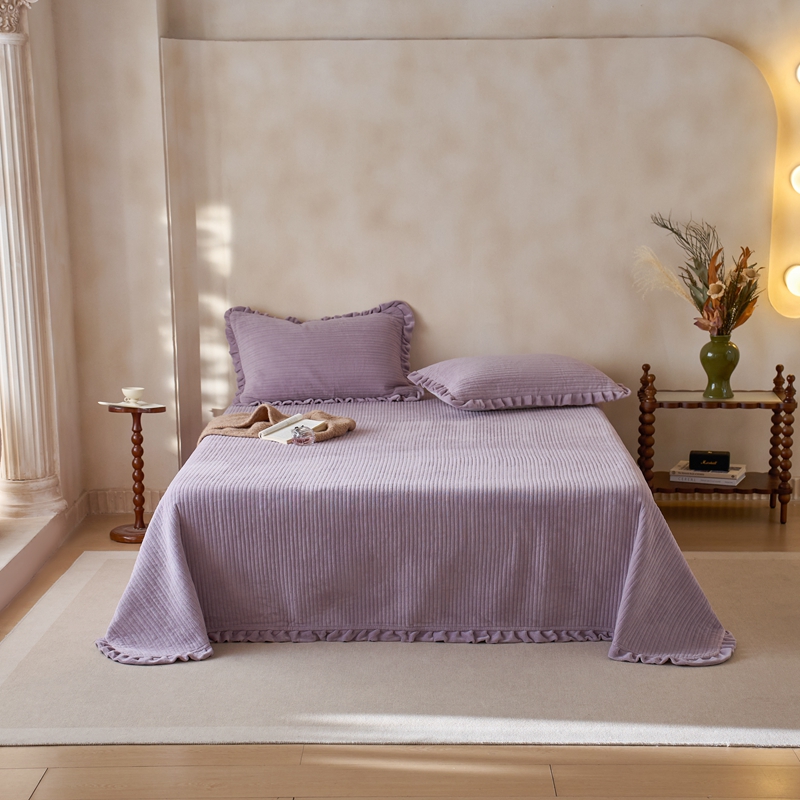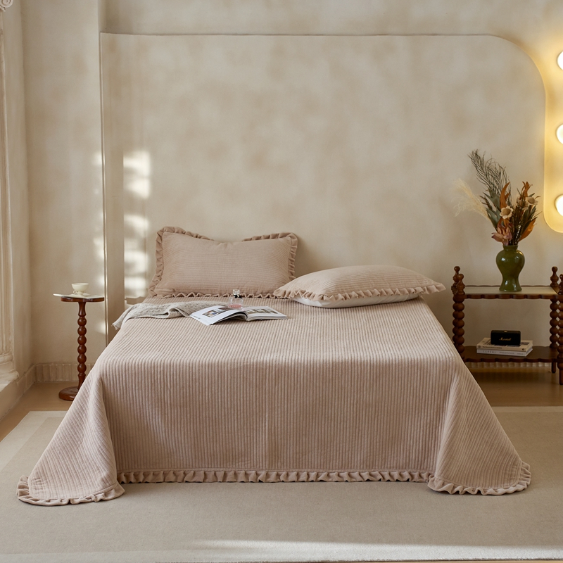 安莱生活 2025年秋冬新品200克牛奶绒花边床盖单品床盖床盖单件 银灰