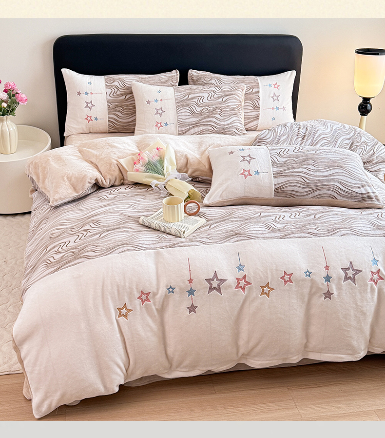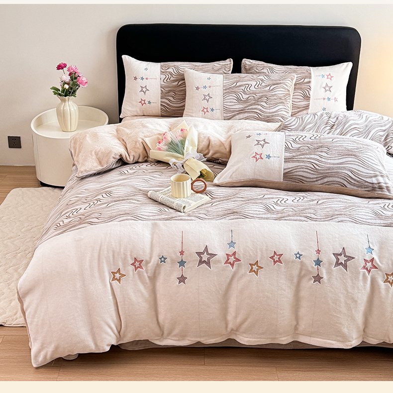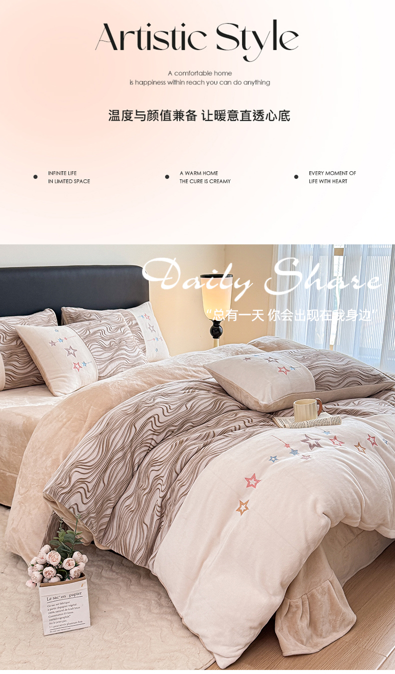 (总)【苏东来】2025高端加厚保暖外贸轻奢款纯色牛奶绒刺绣花四件套床单被套单品简约绒兔毛绒法莱绒婴儿绒套件,时光米黄,时光粉,时光卡其,时光天蓝,时光豆沙