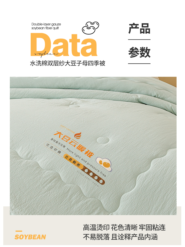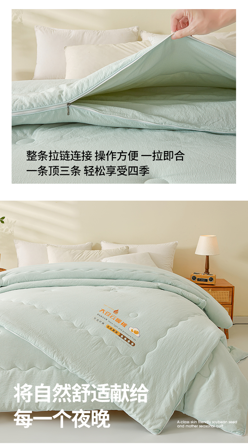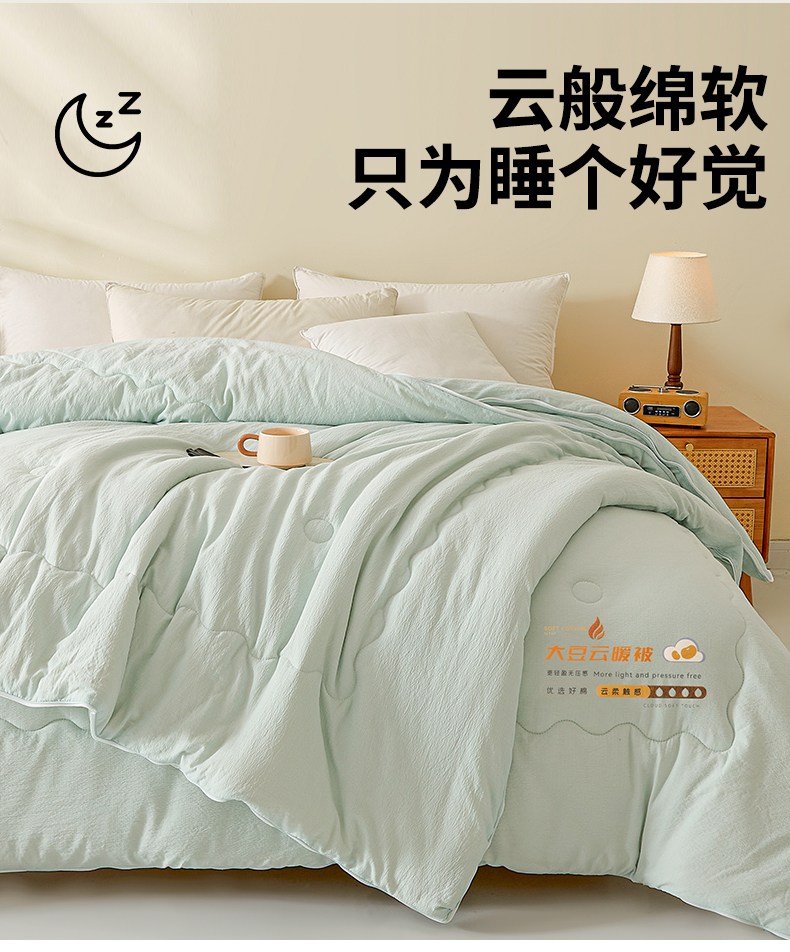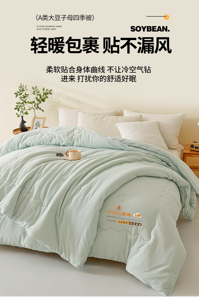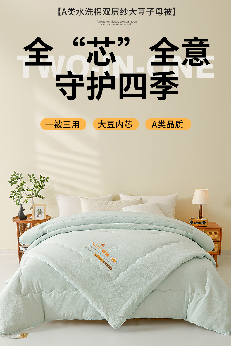 • 91家纺网 家纺一手货源 找家纺 富艺隆 2025新款大豆云暖被二合一子母被提花水洗棉双层纱加厚冬被春秋被 大豆云暖被 淡雅绿