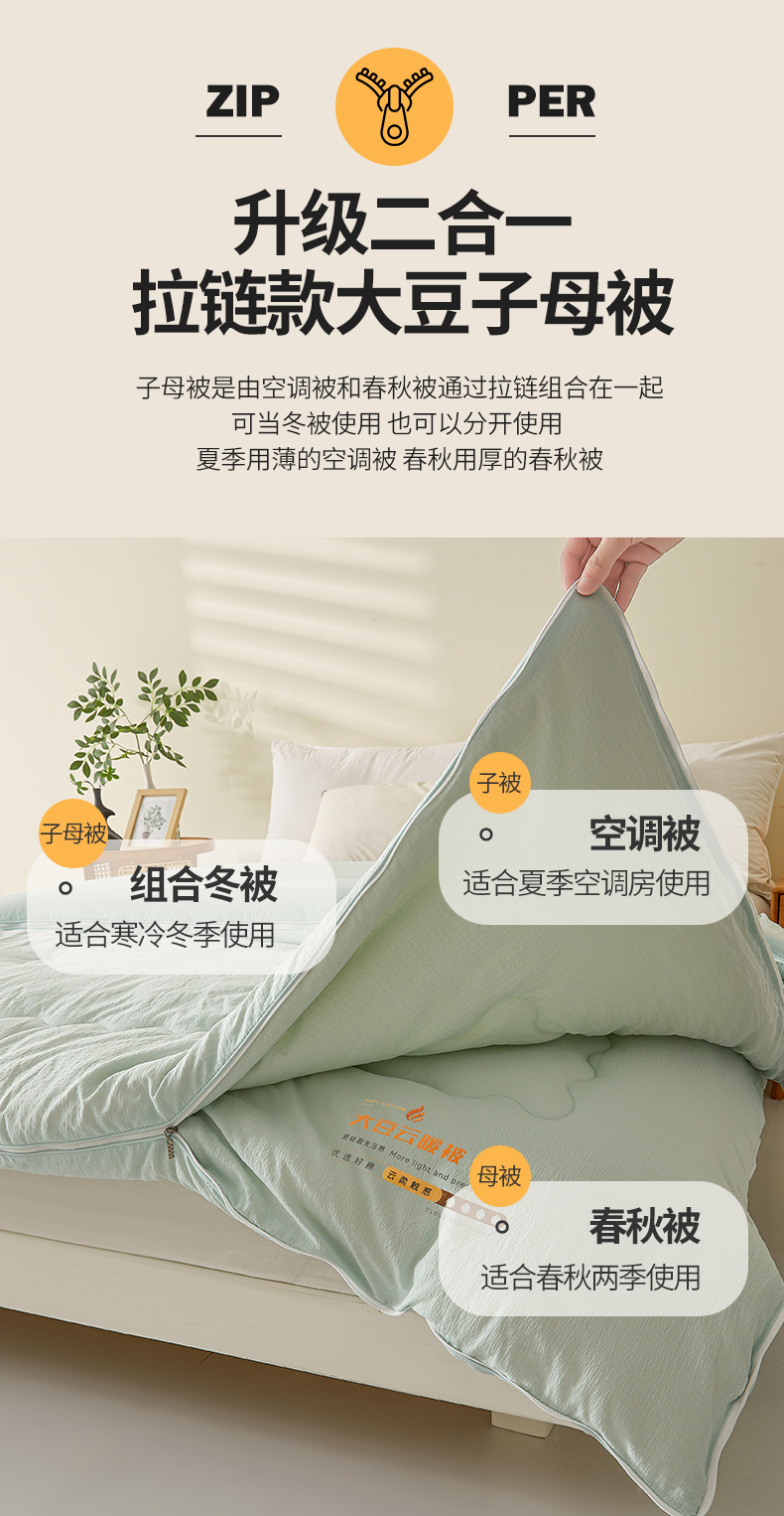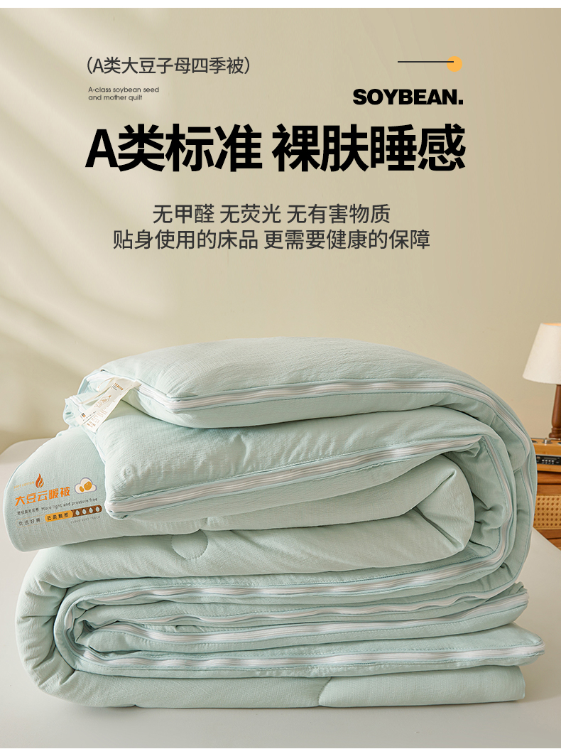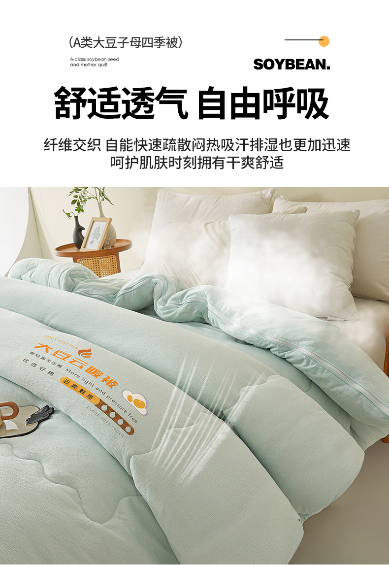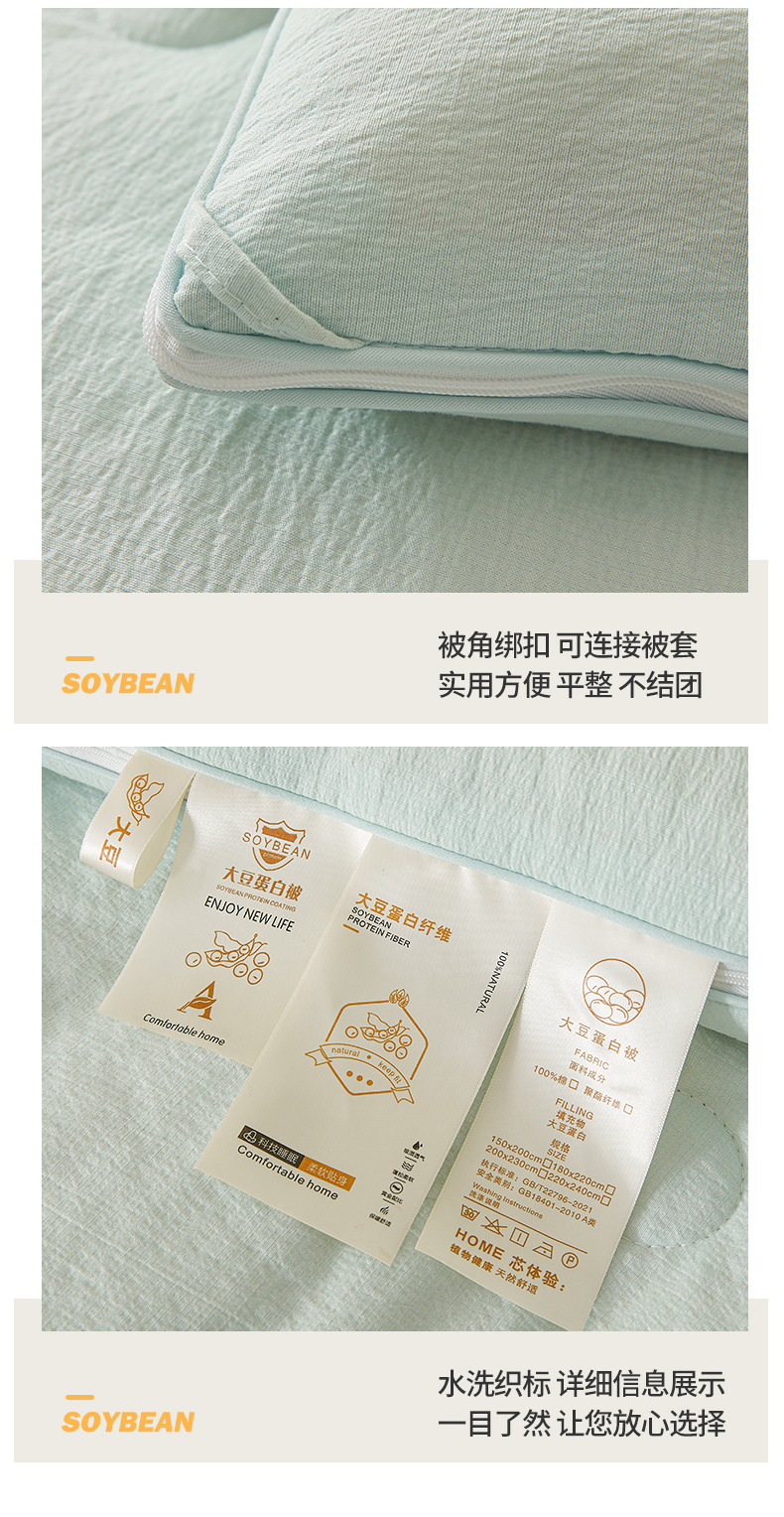 • 91家纺网 家纺一手货源 找家纺 富艺隆 2025新款大豆云暖被二合一子母被提花水洗棉双层纱加厚冬被春秋被 大豆云暖被 淡雅绿