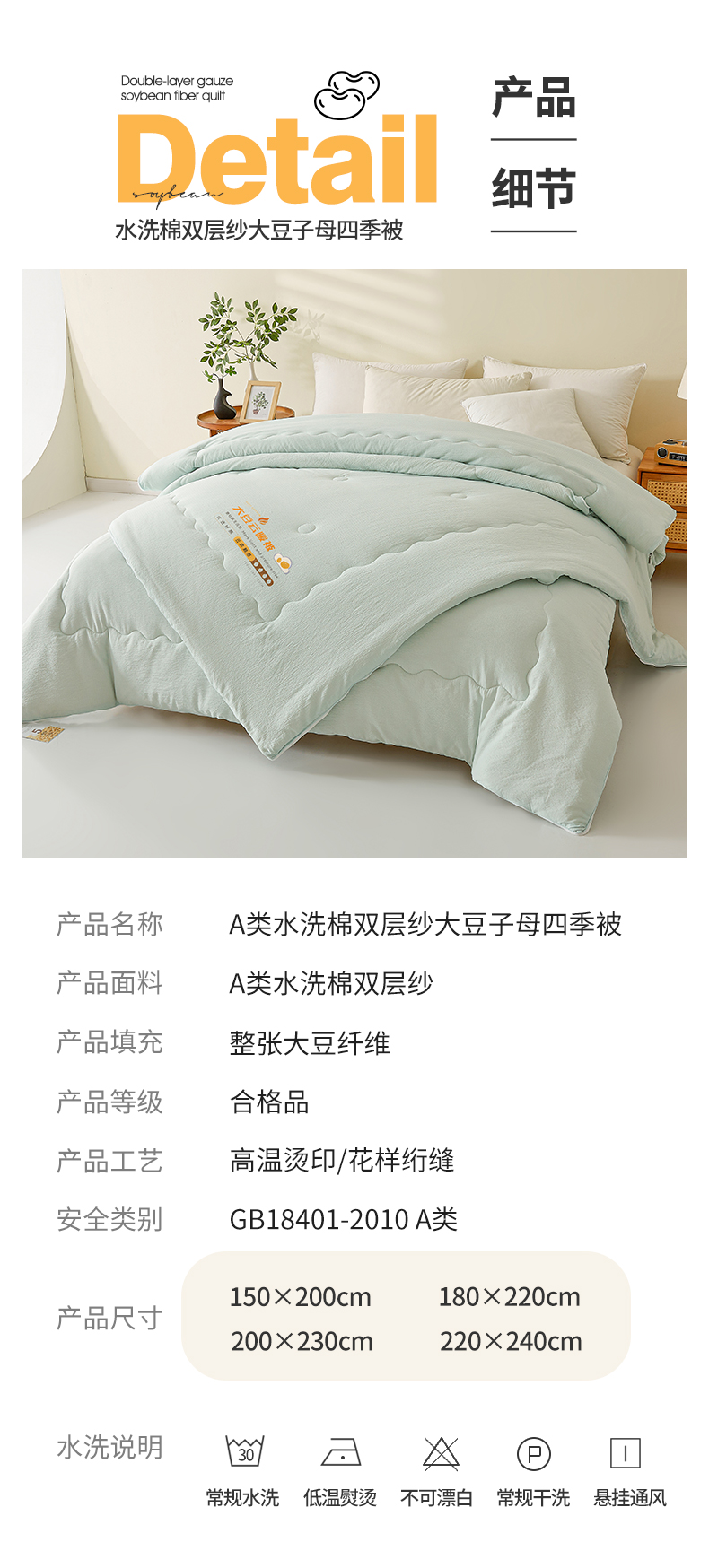 (总)富艺隆 2025新款大豆云暖被二合一子母被提花水洗棉双层纱加厚冬被春秋被,大豆云暖被 星空灰,大豆云暖被 淡雅绿,大豆云暖被 简兮粉,大豆云暖被 心悦粉,大豆云暖被 云朵白