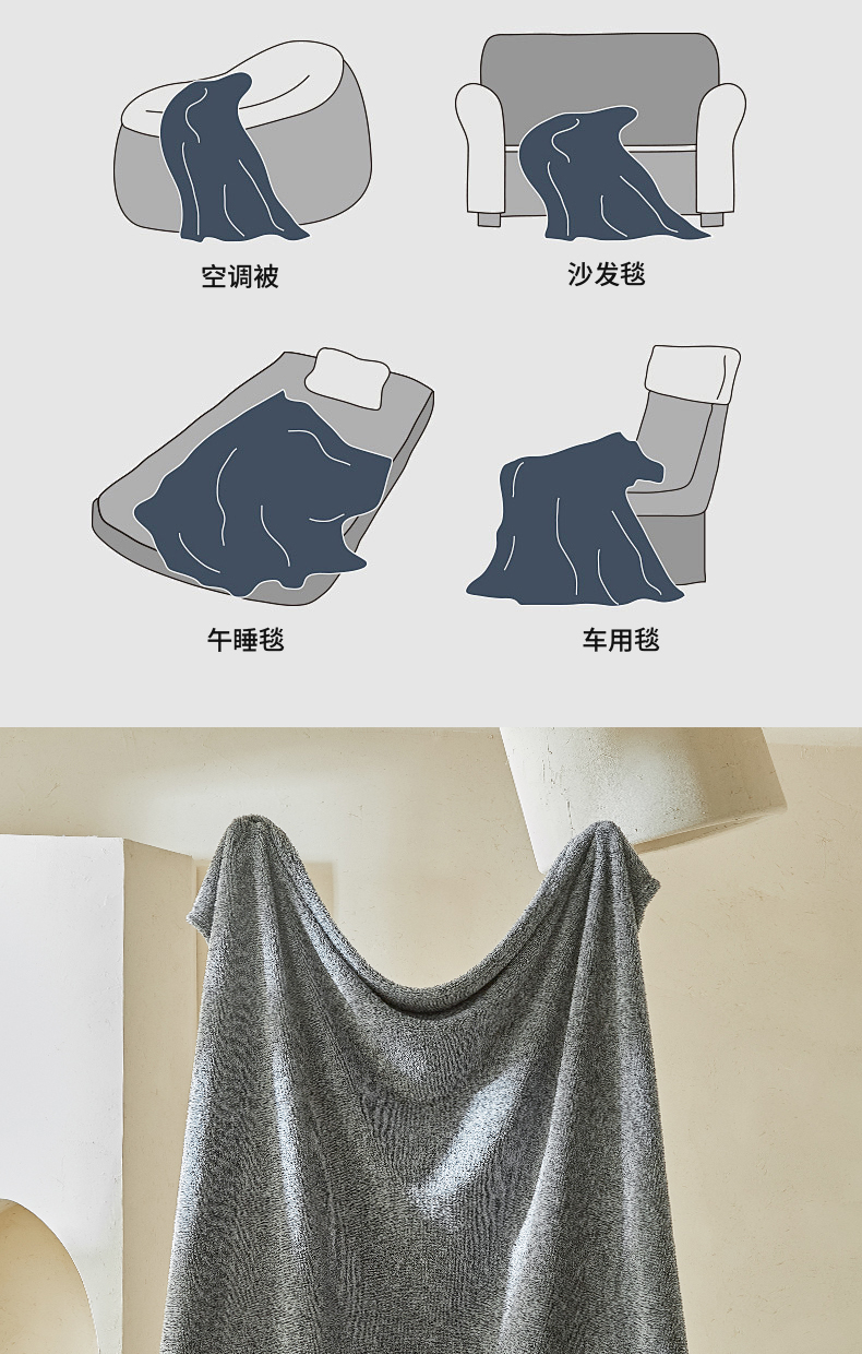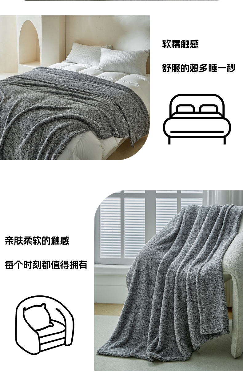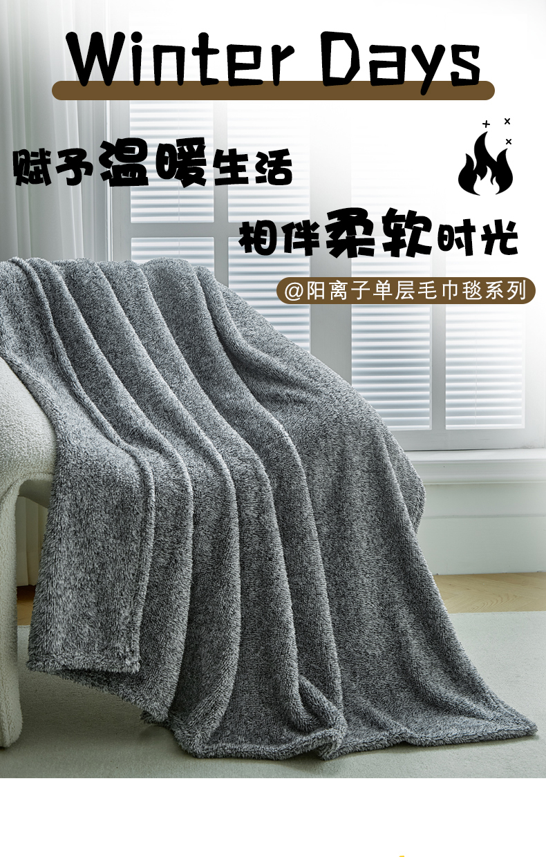 商品名称:缘生活 2025新款阳离子毛巾毯四季通用百搭款毛毯毯子 阳离子毛巾毯灰色