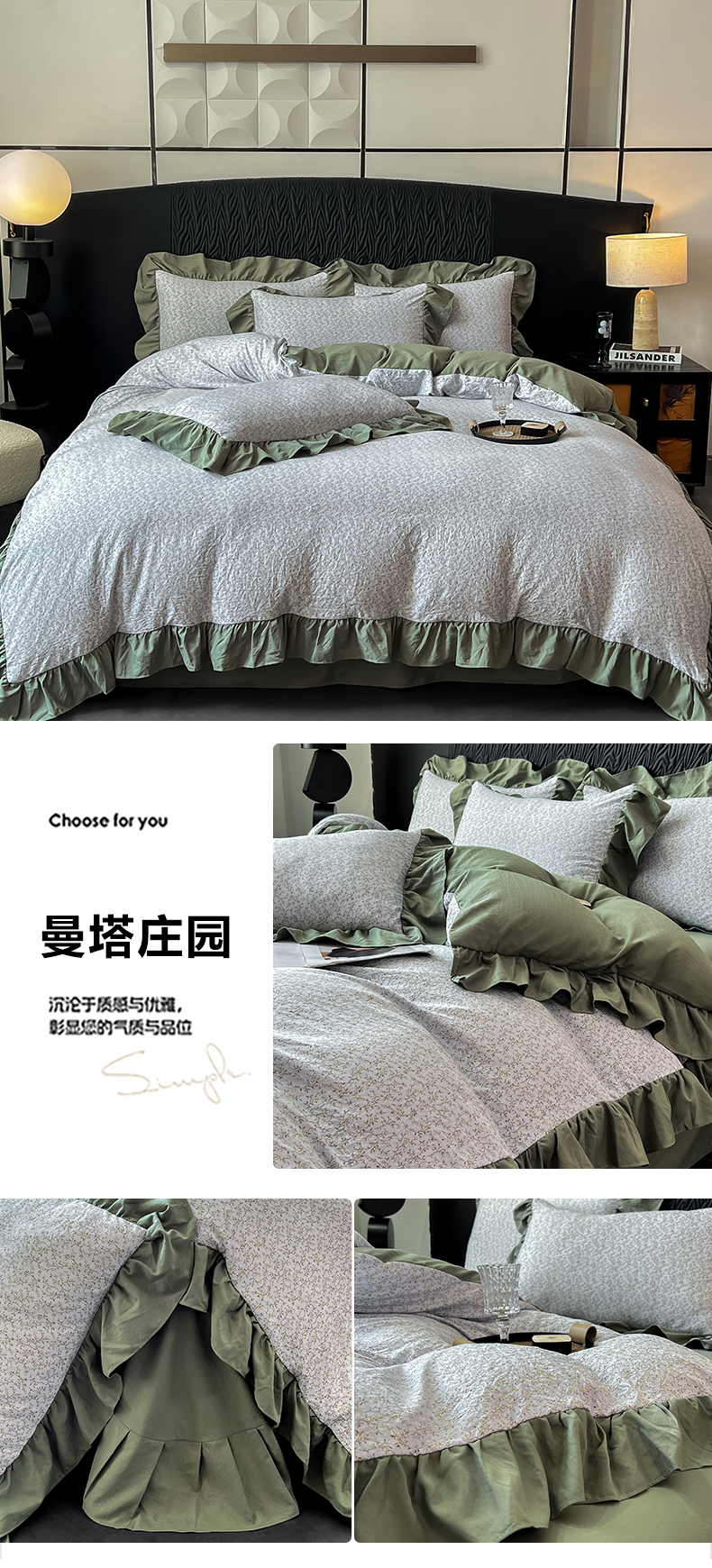 豫见家纺 2025新款云感棉花边四件套 庭院春深