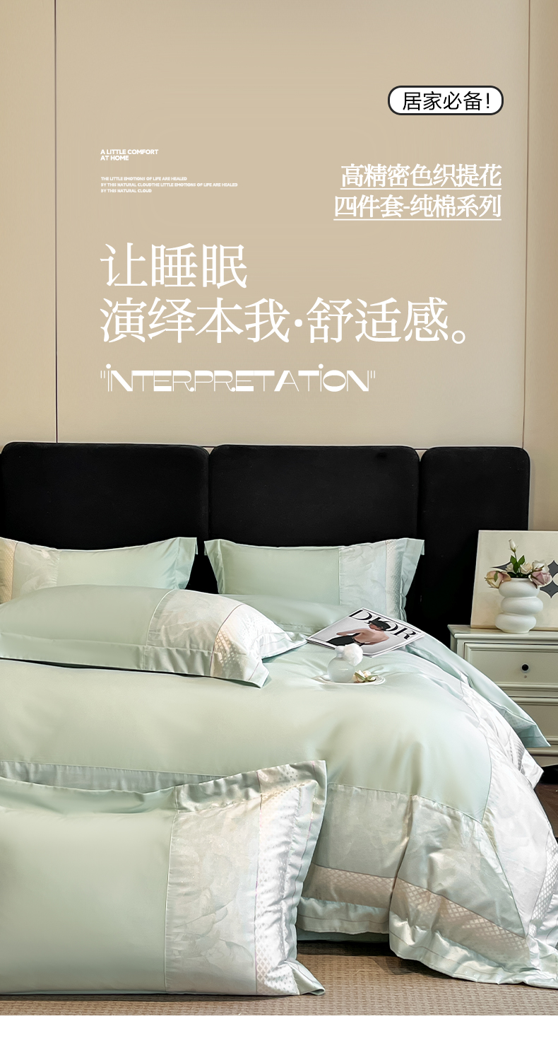 (总)博纳家纺 2025新款多色色织提花宽边高级简奢款纯棉四件套-山木花亭,山木花亭-繁星蓝,山木花亭-粉玉,山木花亭-绅士灰,山木花亭-香槟