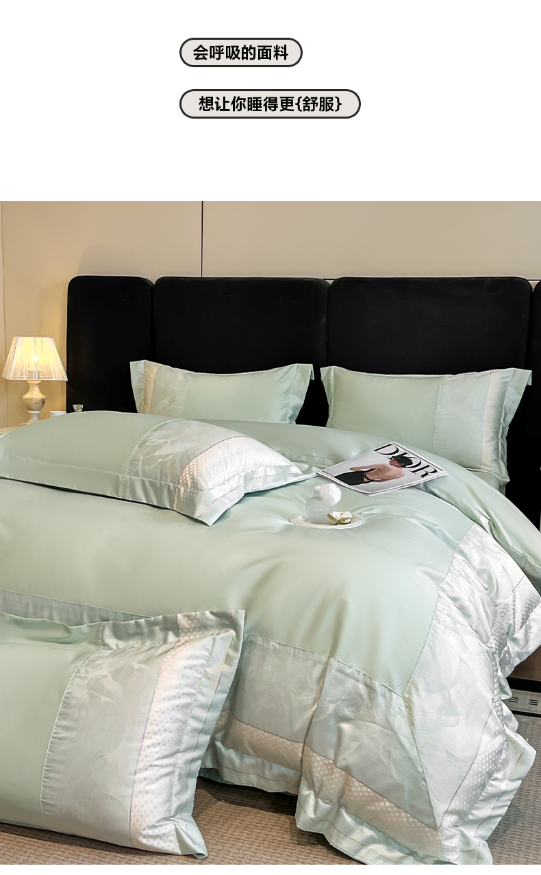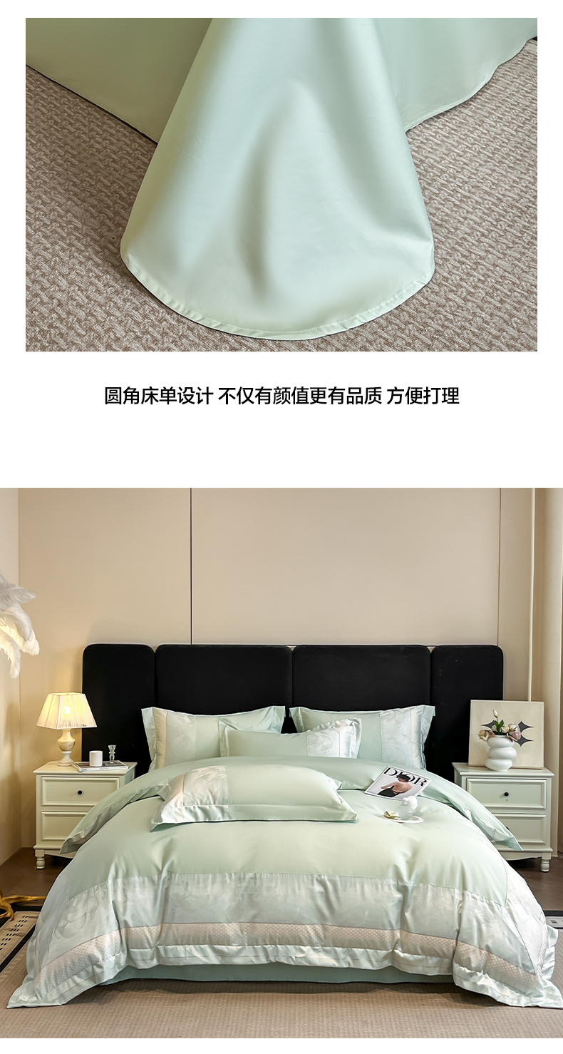 (总)博纳家纺 2025新款镂空大宽边拼角高级简奢款亲肤棉四件套-山水提花,繁星蓝,粉玉,高级灰,香槟,象牙白
