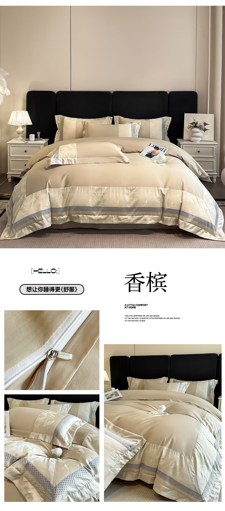 (总)博纳家纺 2025新款双色宽边高级简奢款四件套-维多利亚,高级灰,咖色,香槟,象牙白