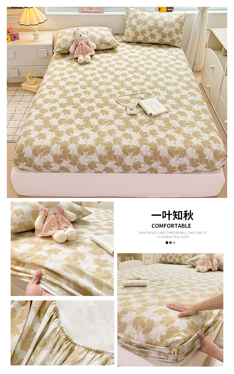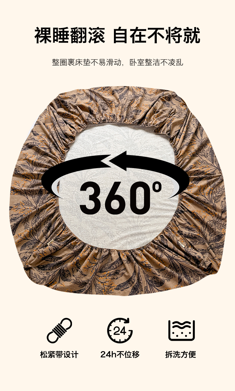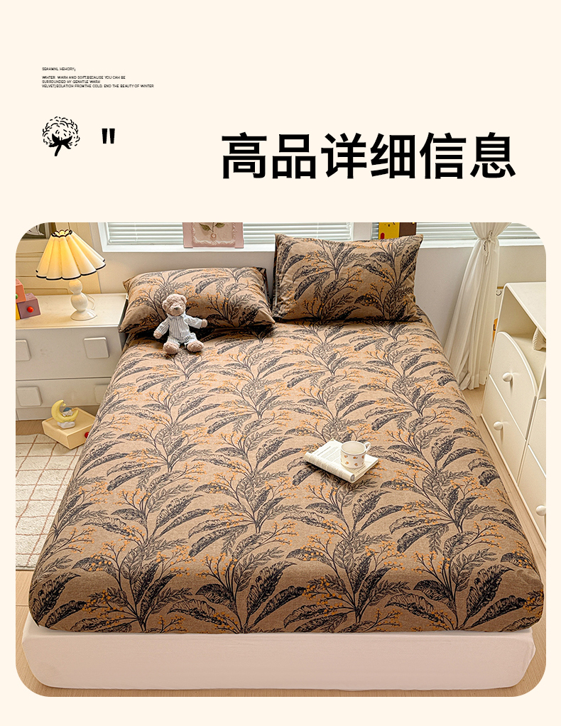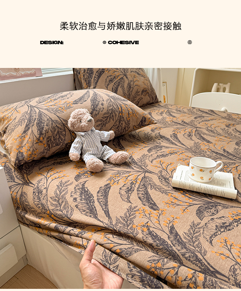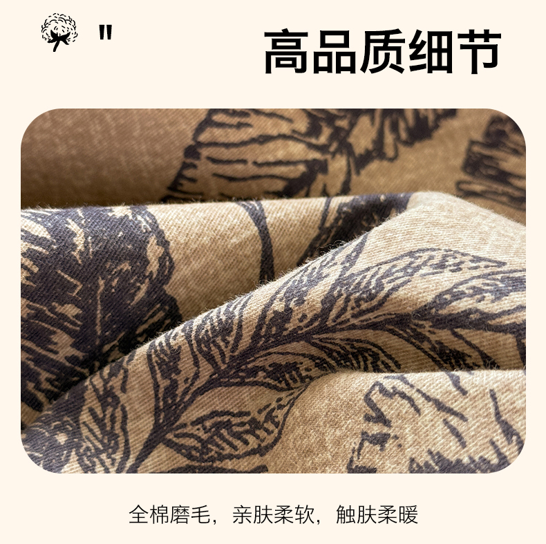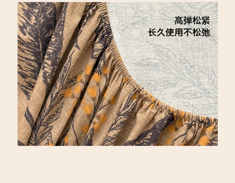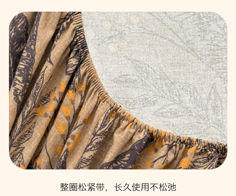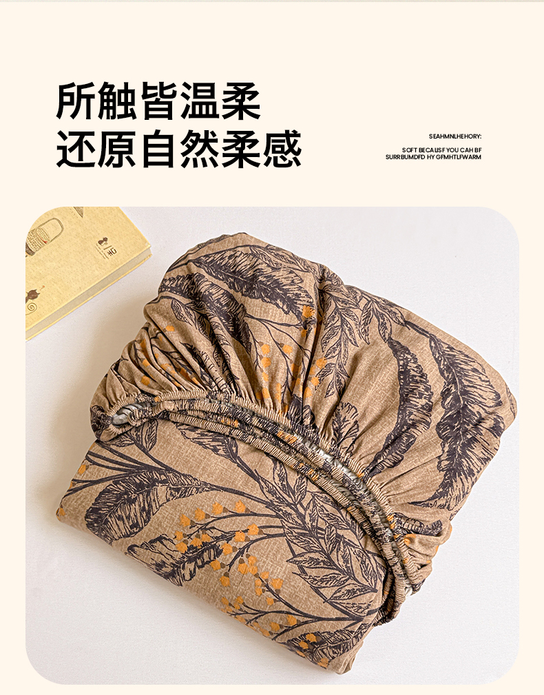 • 91家纺网 家纺一手货源 找家纺 名兮家居 2025新款亲肤舒适全棉纯棉磨毛印花床笠单床笠单品床笠单件床笠 繁叶流金-咖