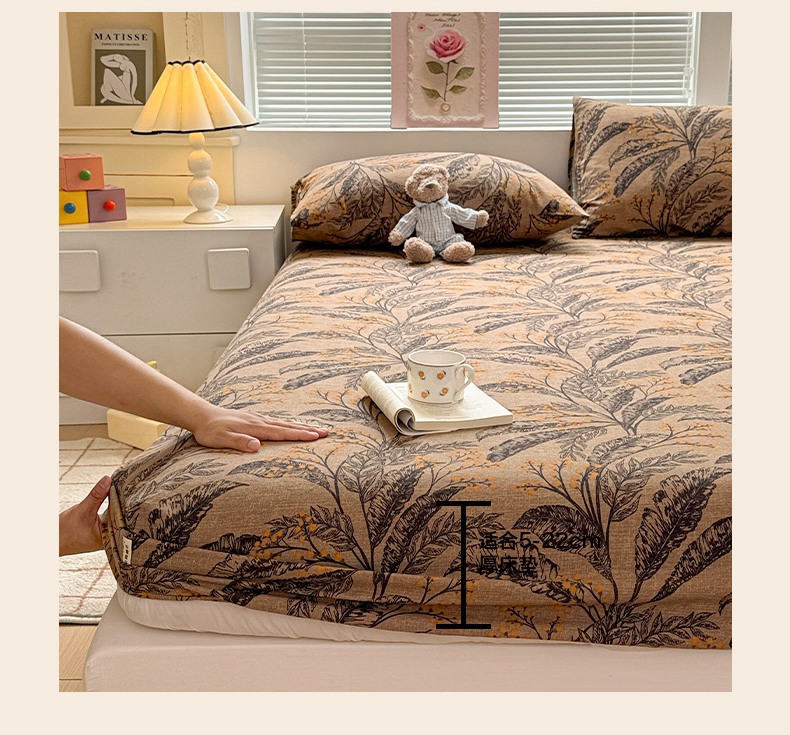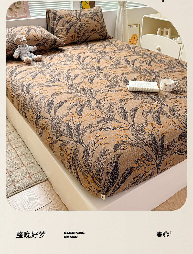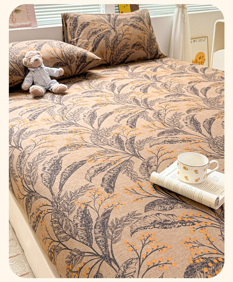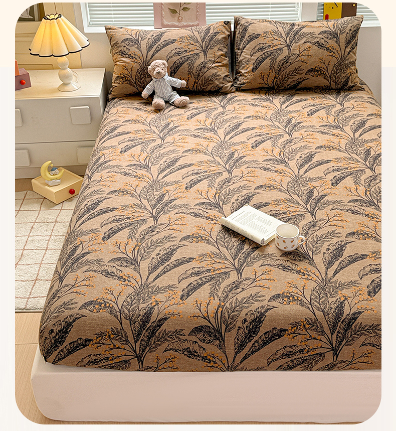 名兮家居 2025新款亲肤舒适全棉纯棉磨毛印花床笠单床笠单品床笠单件床笠 繁叶流金-咖