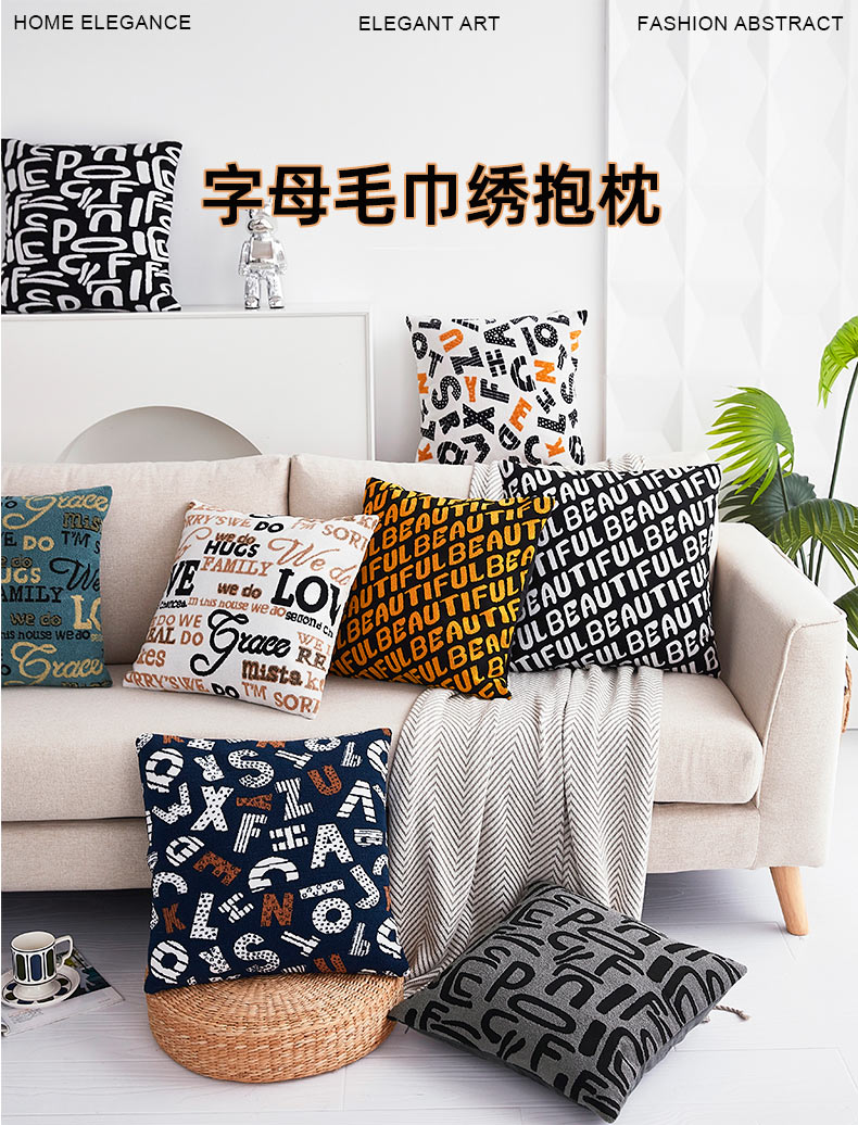 商品名称:新奇异 2025新款字母毛巾绣抱枕 温情-蓝灰