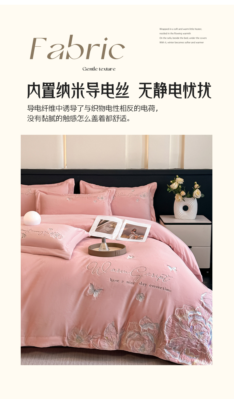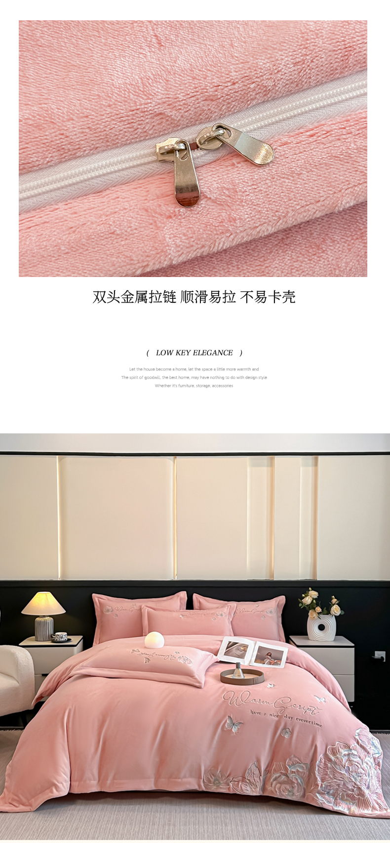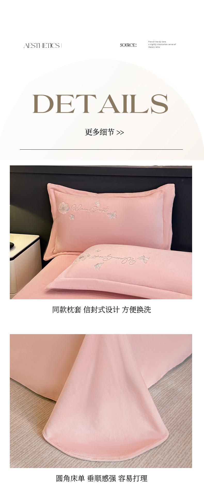 商品名称:锦铭源家纺 2025新款75D全消光超柔樱花绒绣花四件套牛奶绒四件套【有买家秀】 花颜-粉