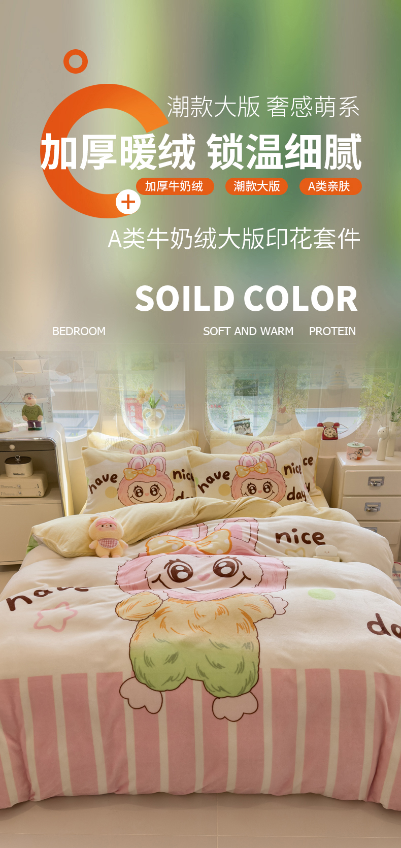当前位置: 91家纺网 > 商品网购 > 床品套件 > 四件套 > 牛奶绒四件套 > 丝羽坊 2025新款A类大版牛奶绒印花四件套 七彩布布