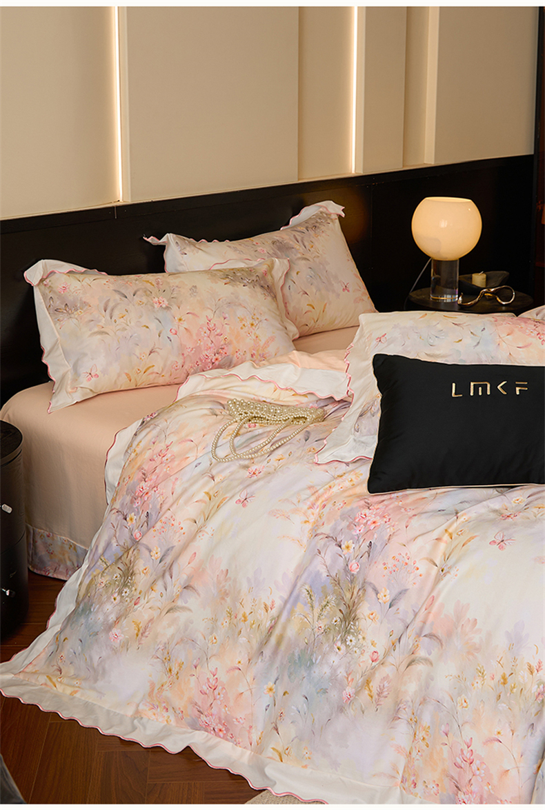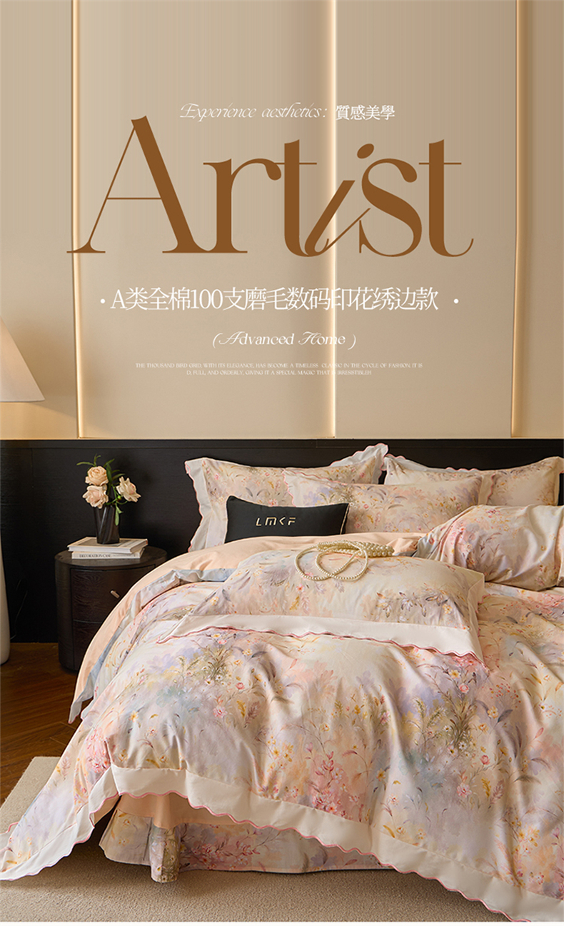 蓝米卡夫 2025秋冬-A类全棉50S*50S双股磨毛数码印花绣边款(礼盒包装)提供买家秀 浮生若棠