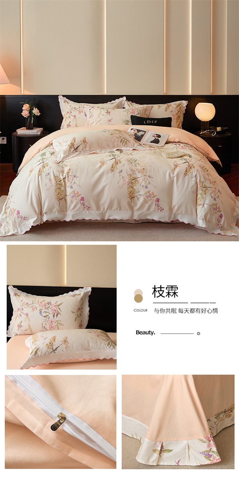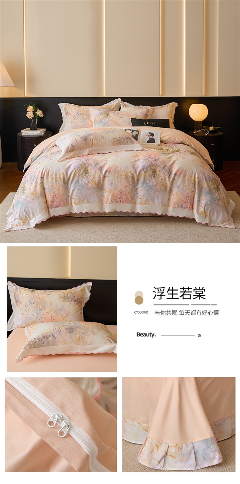 商品名称:蓝米卡夫 2025秋冬-A类全棉50S*50S双股磨毛数码印花绣边款(礼盒包装)提供买家秀 浮生若棠