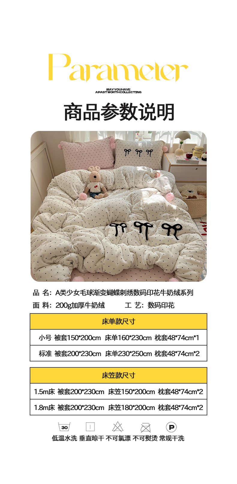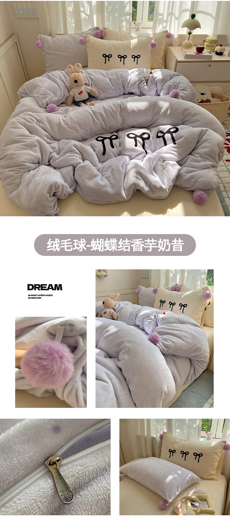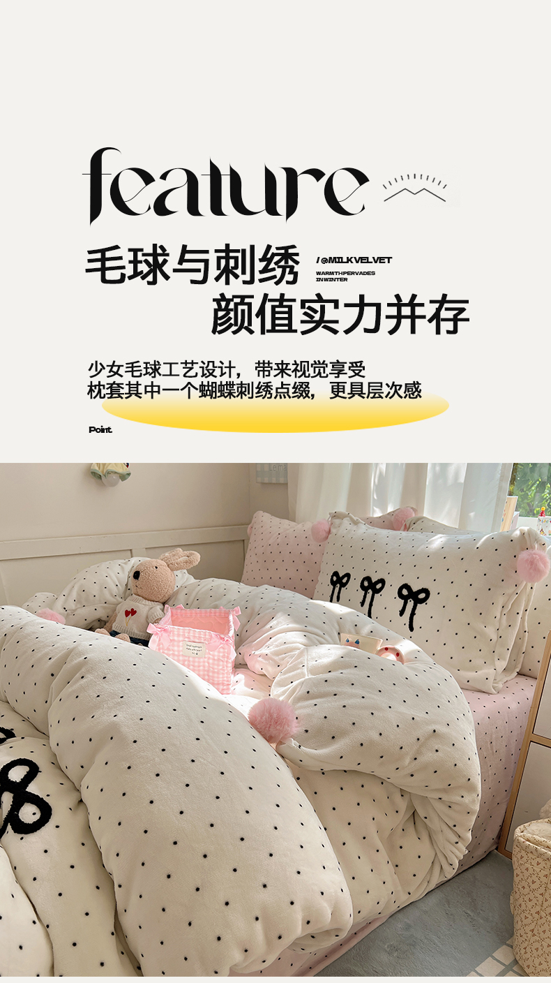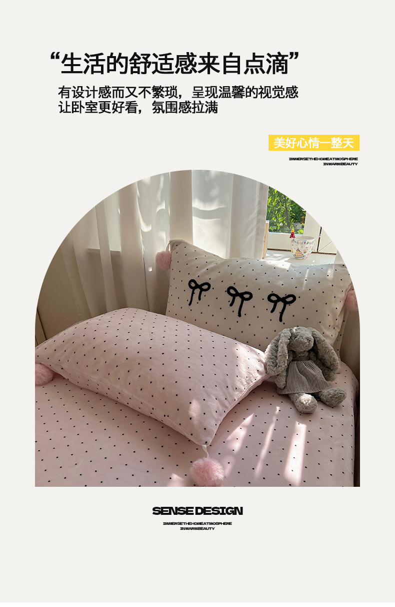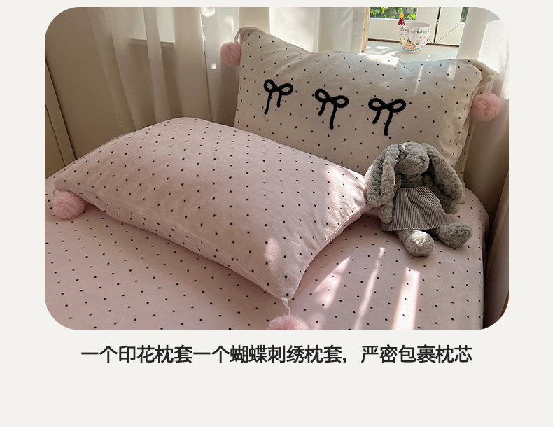 当前位置: 91家纺网 > 商品网购 > 床品套件 > 四件套 > 牛奶绒四件套 > 桃子家居 2025新款insA类少女甜心毛球混搭工艺蝴蝶结刺绣毛巾绣印花加厚牛奶绒四件套 绒毛球-蝴蝶结珍珠粉点