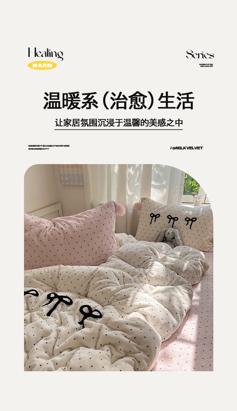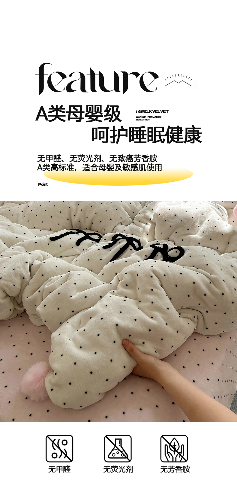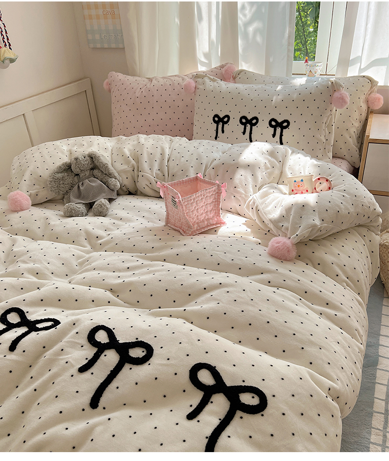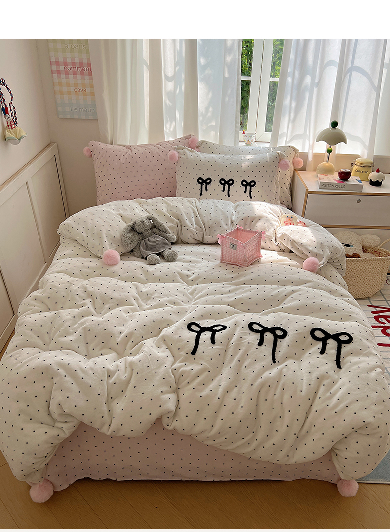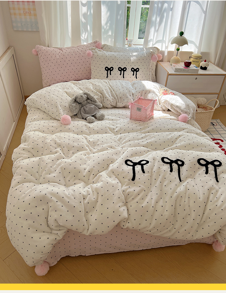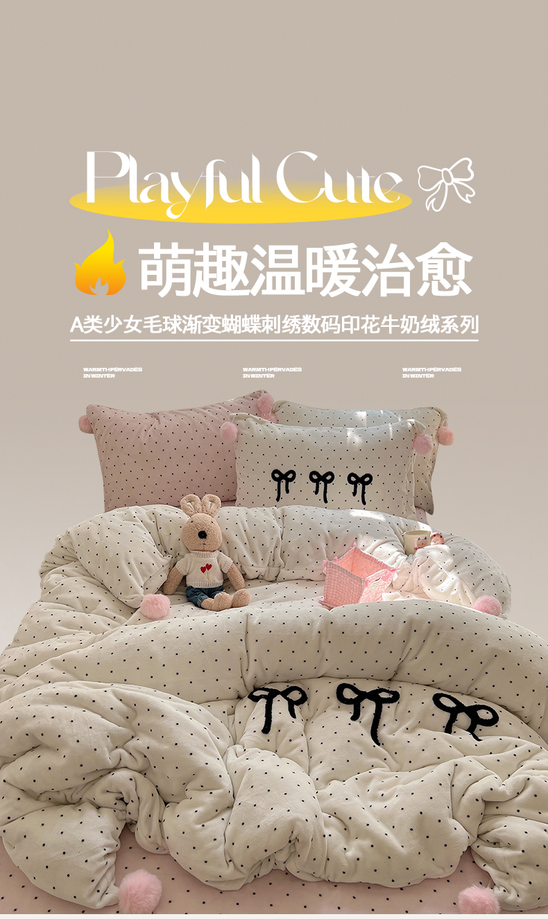 当前位置: 91家纺网 > 商品网购 > 床品套件 > 四件套 > 牛奶绒四件套 > 桃子家居 2025新款insA类少女甜心毛球混搭工艺蝴蝶结刺绣毛巾绣印花加厚牛奶绒四件套 绒毛球-蝴蝶结珍珠粉点