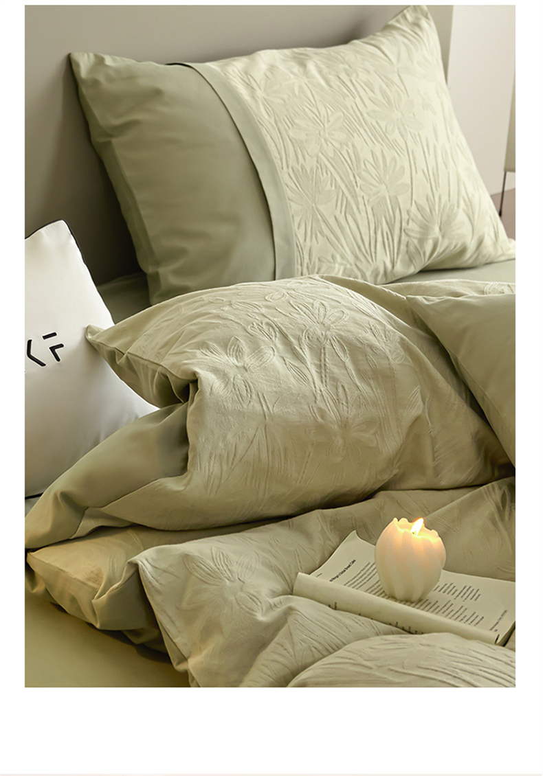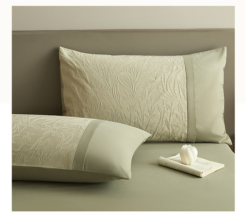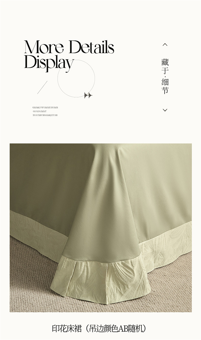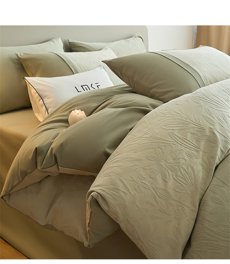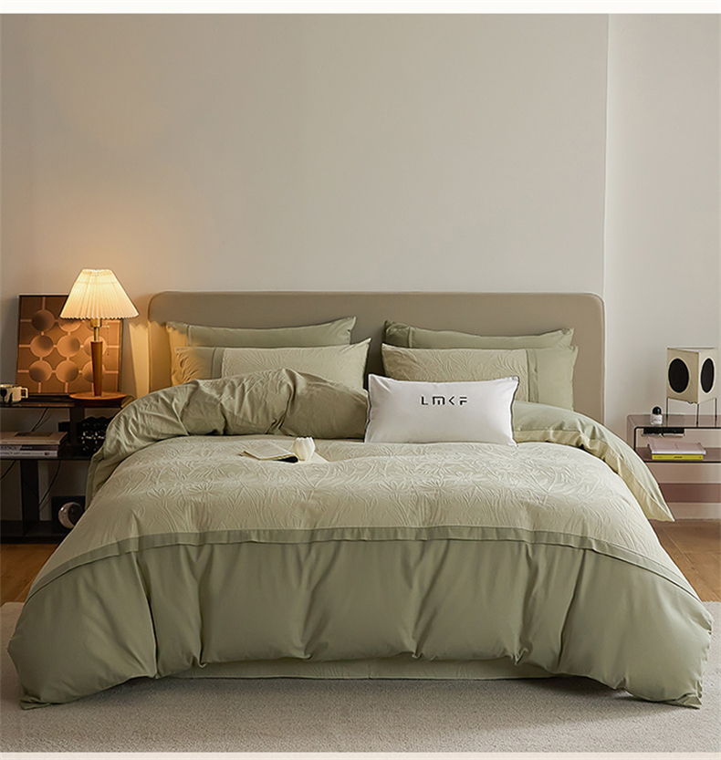 商品名称:蓝米卡夫 2025秋冬-A类全棉亮面提花50S*50S双股磨毛拼接款(礼盒包装)提供买家秀 秘境-奶绿