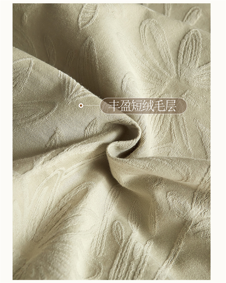 蓝米卡夫 2025秋冬-A类全棉亮面提花50S*50S双股磨毛拼接款(礼盒包装)提供买家秀 秘境-奶绿