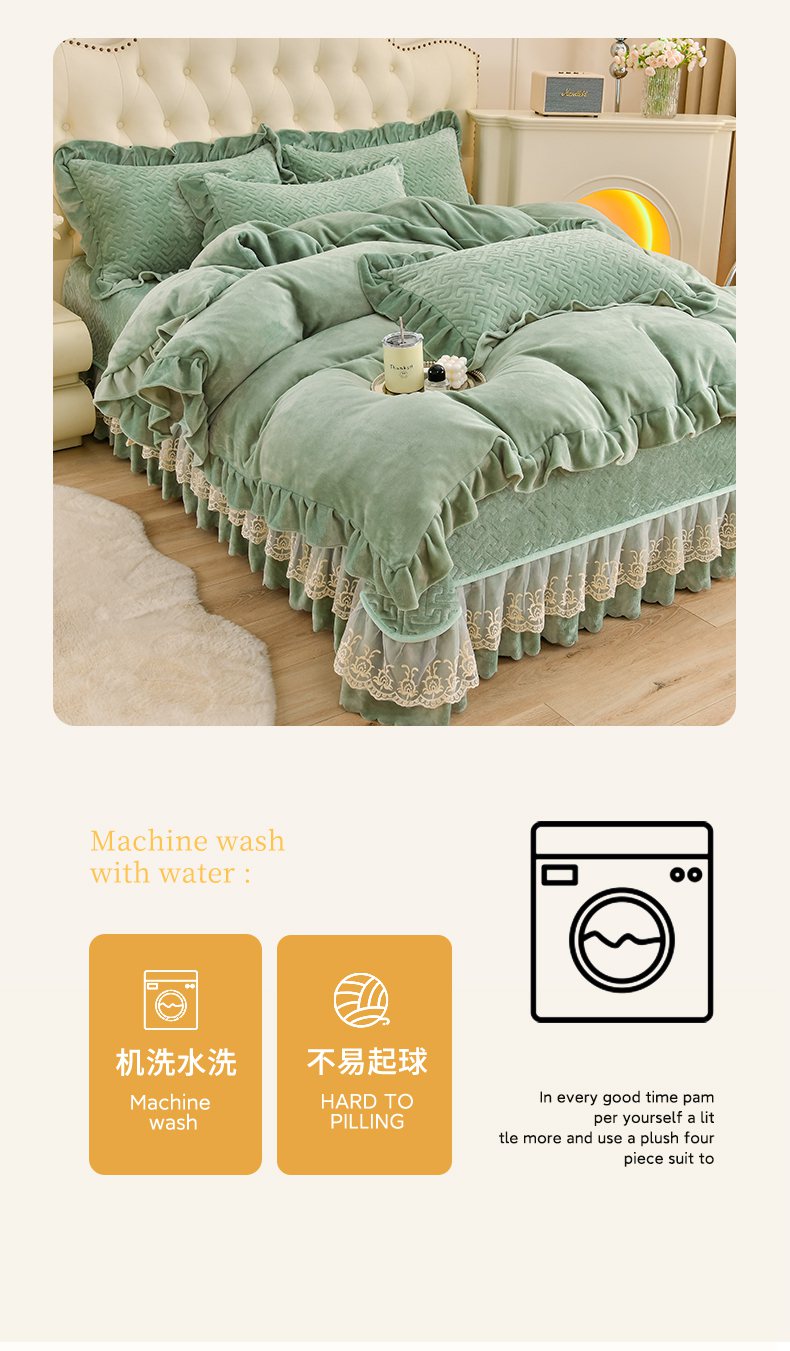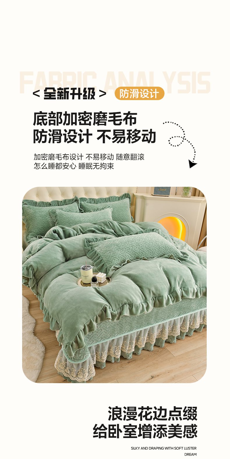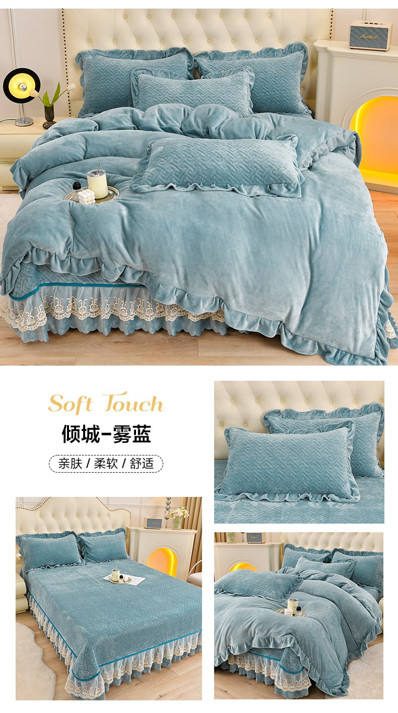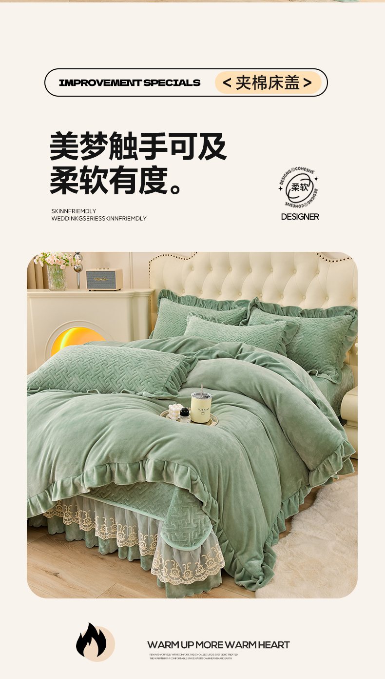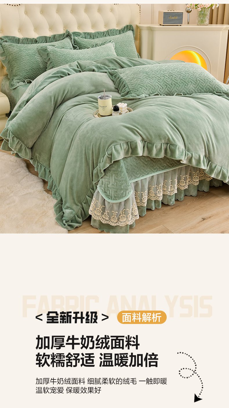 畅畅家纺 2025新款11斤秋冬加厚纯色韩版牛奶绒夹棉床盖四件套-倾城 倾城-松石绿