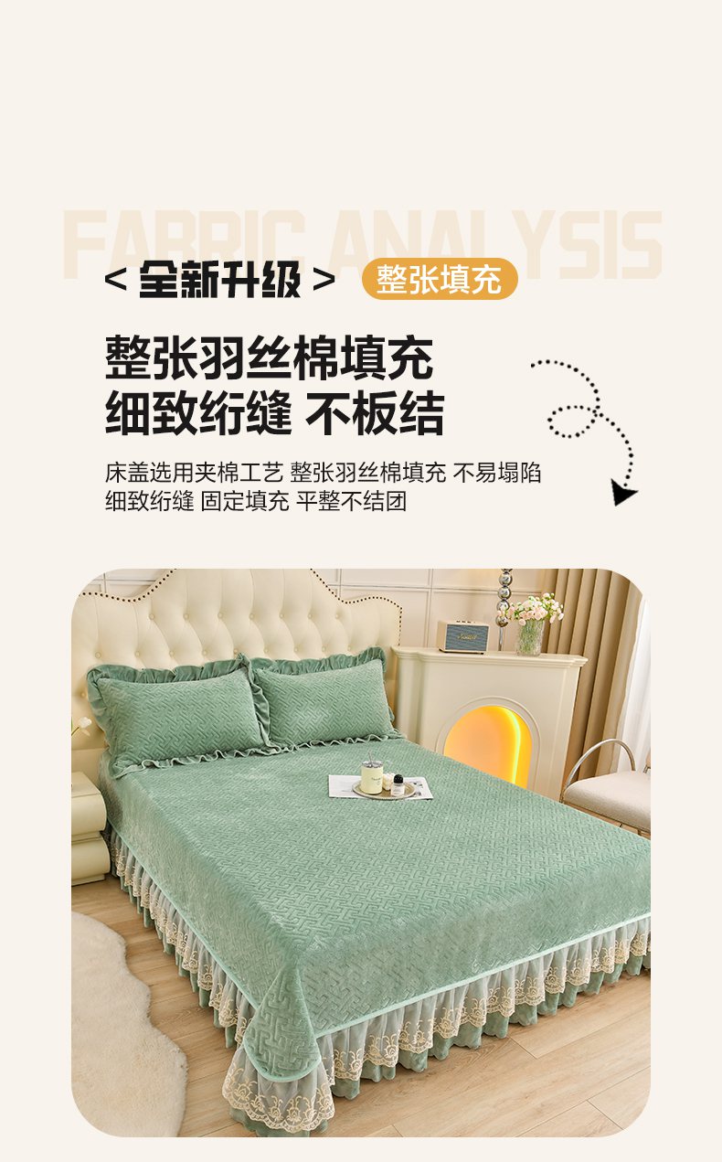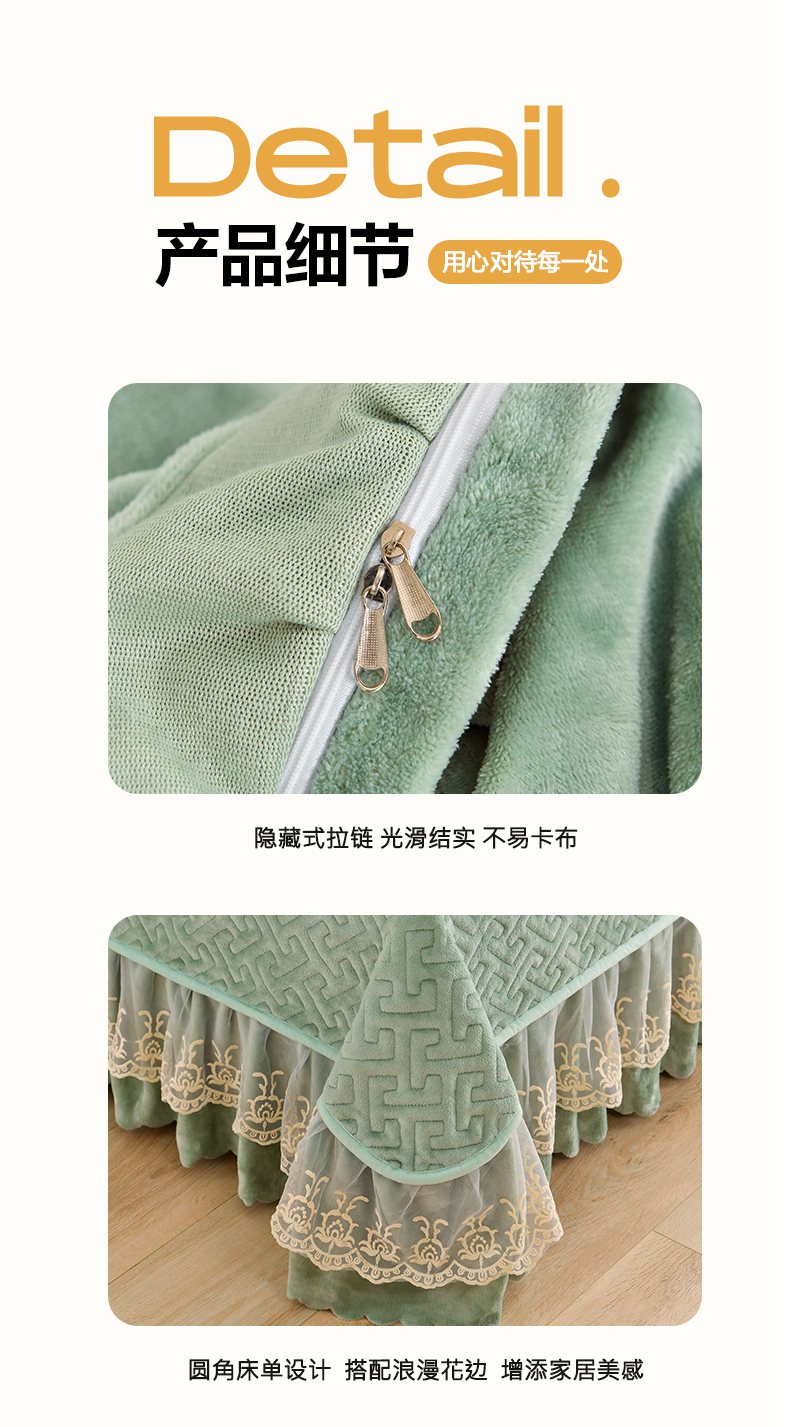 商品名称:畅畅家纺 2025新款11斤秋冬加厚纯色韩版牛奶绒夹棉床盖四件套-倾城 倾城-松石绿