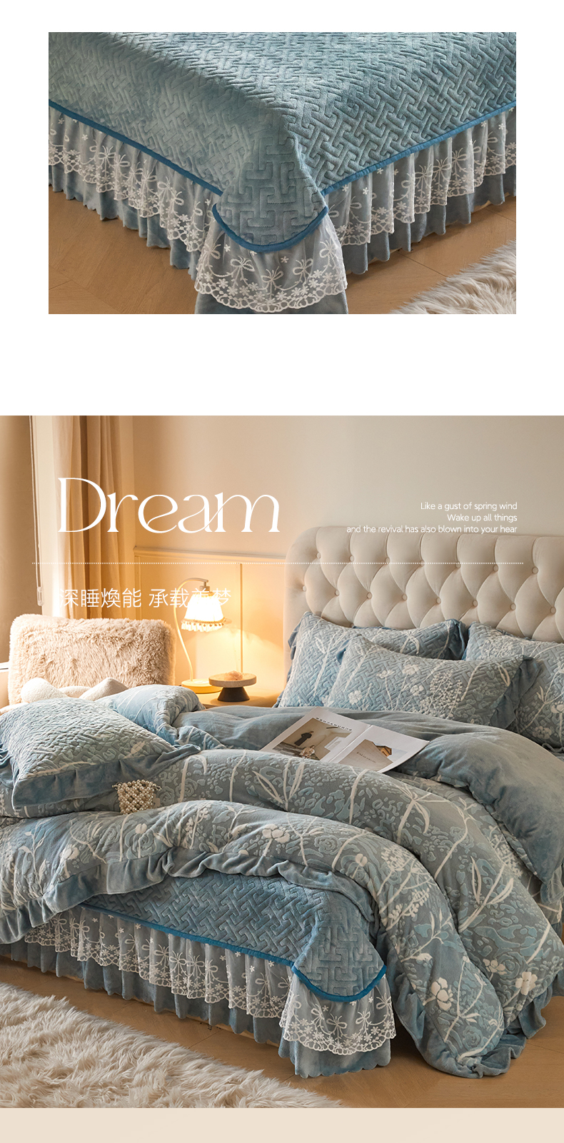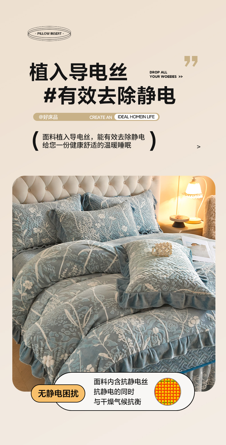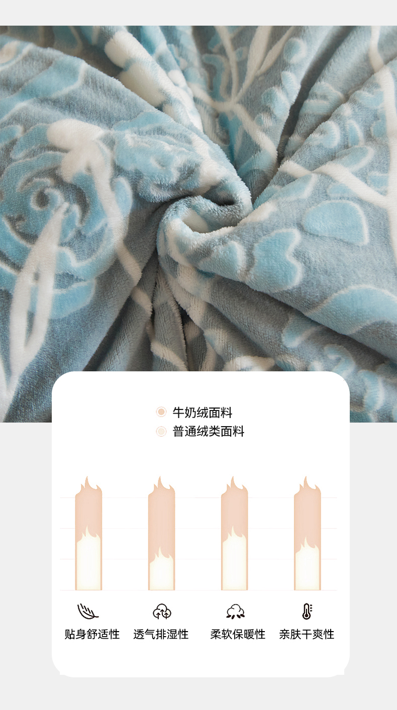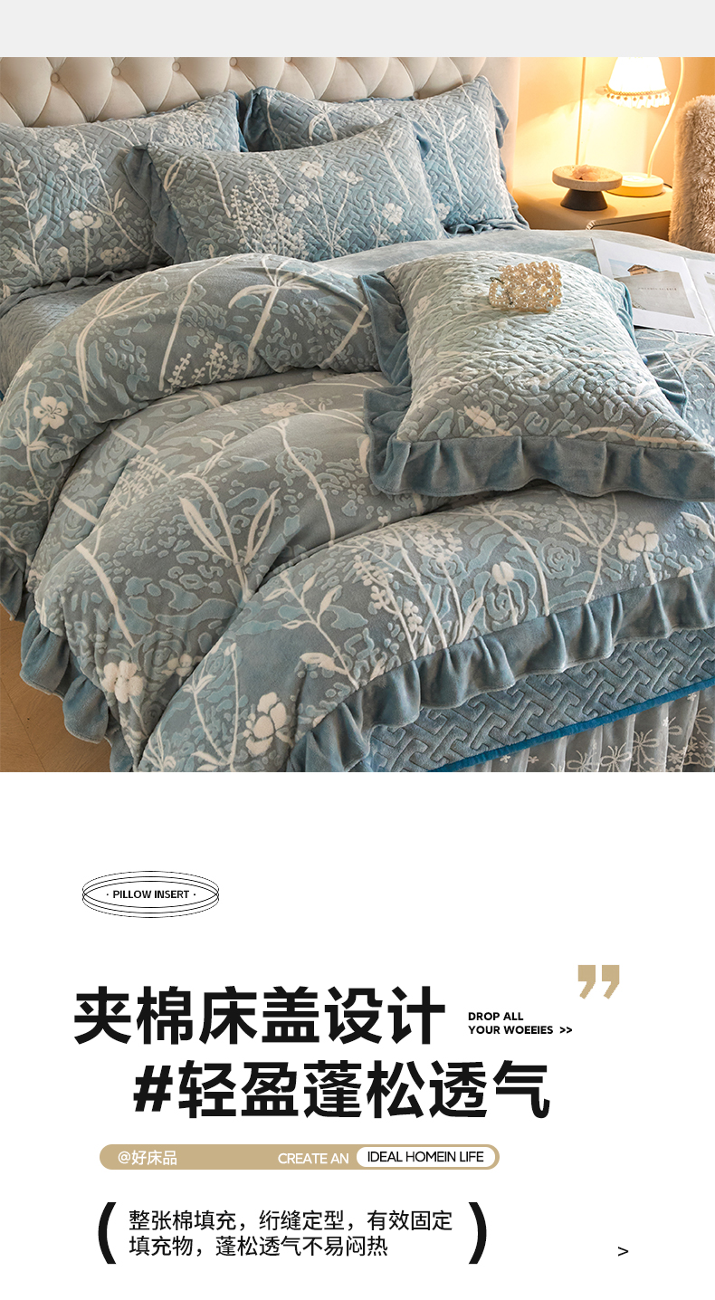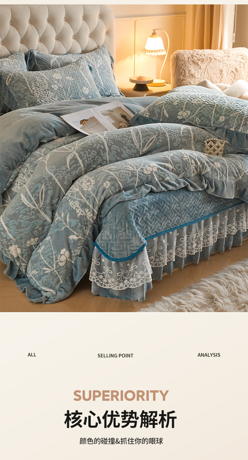 商品名称:畅畅家纺 2025新款11斤高克重新款韩版烂花牛奶绒冬季加厚床盖四件套系列 雾里看花-雾蓝