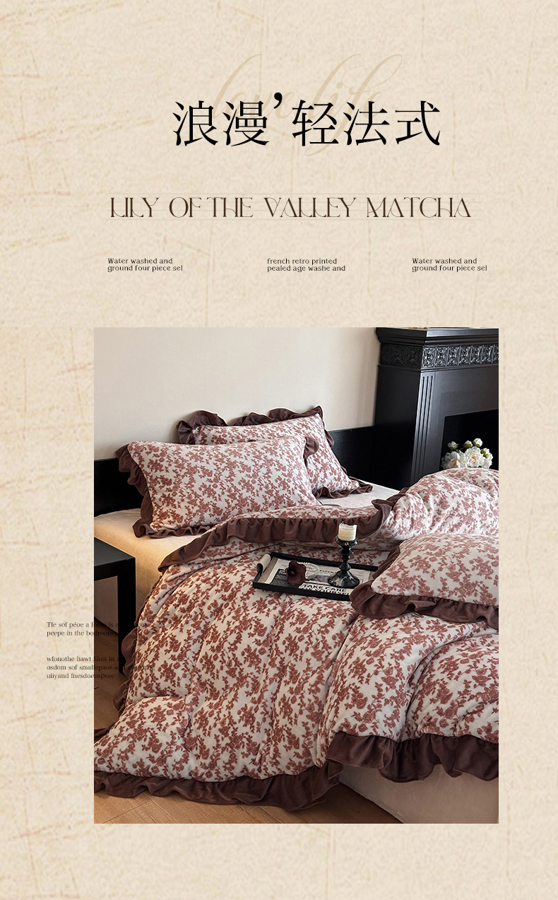 (总)三朵家纺 2026新款A类云柔水洗棉韩版法式花边云朵棉四件套,春夕集,罗逸维绿,如漫,惜花灰绿,赫拉