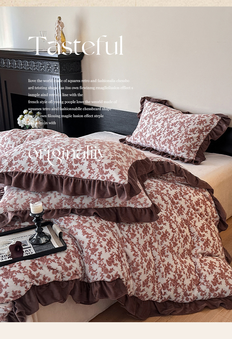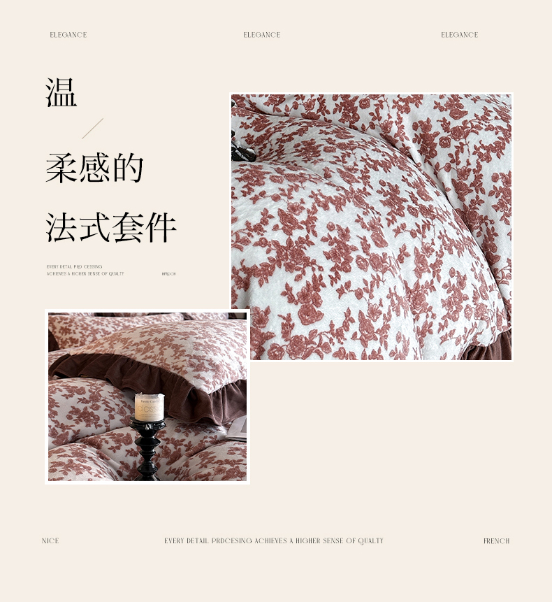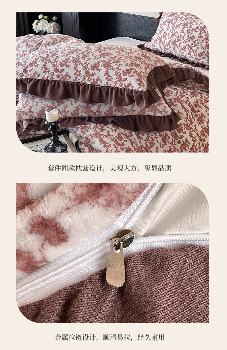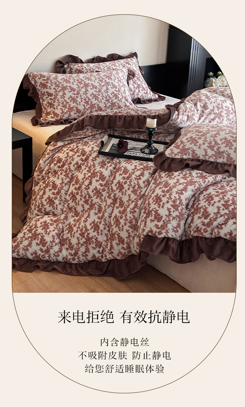 商品名称:三朵家纺 2025新款秋冬法式复古风法莱绒花边四件套 紫嫣
