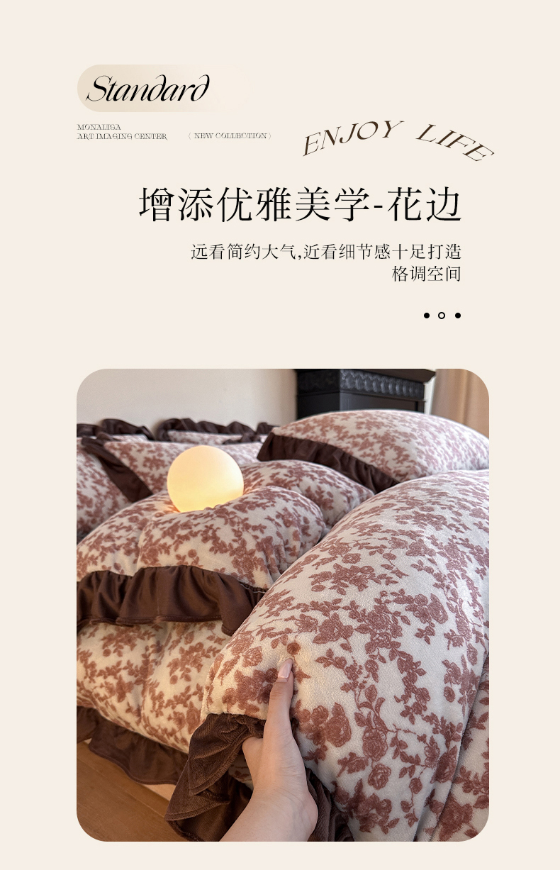 (总)三朵家纺 2024新款3D立体浮雕花边保暖加厚四件套,馥郁芳芬,花园小径粉,花园小径黄,绿野仙踪,暖暖花语