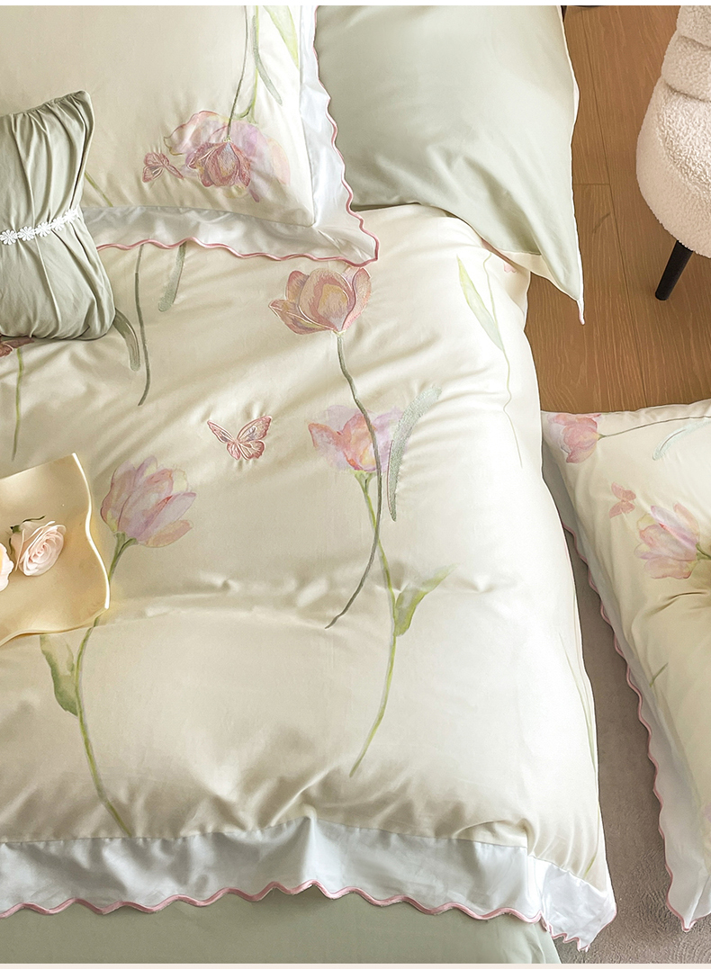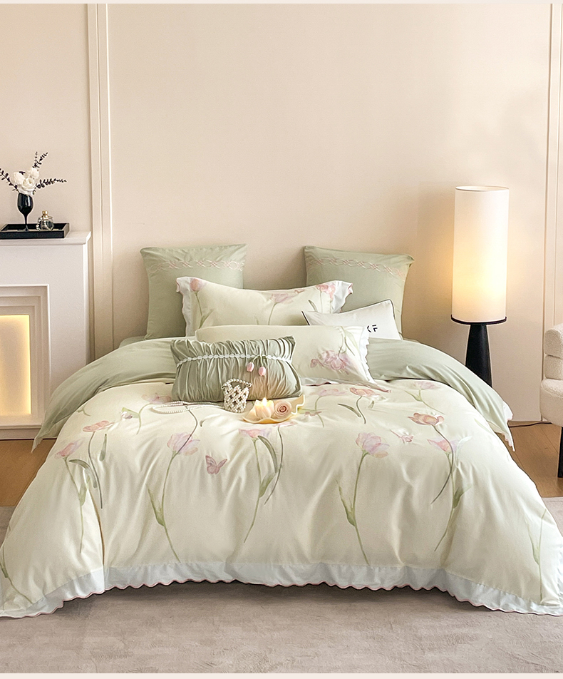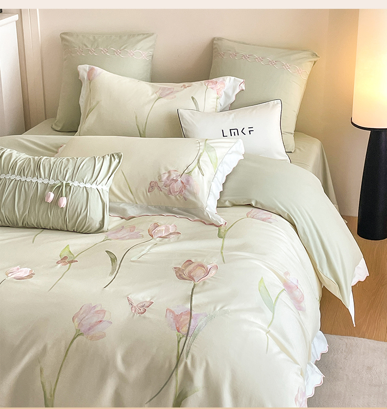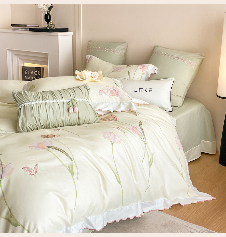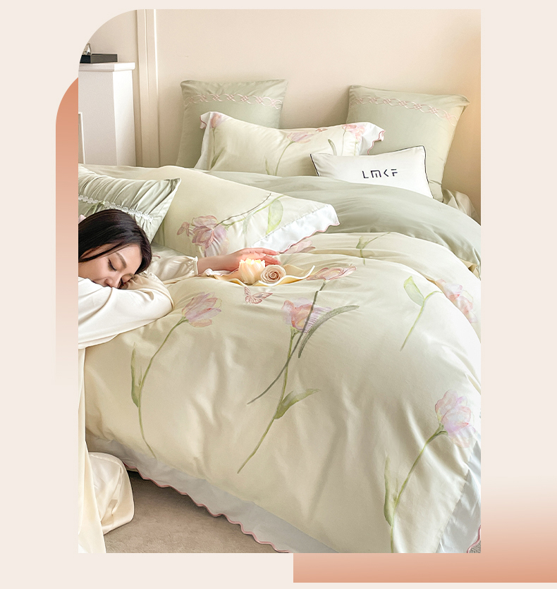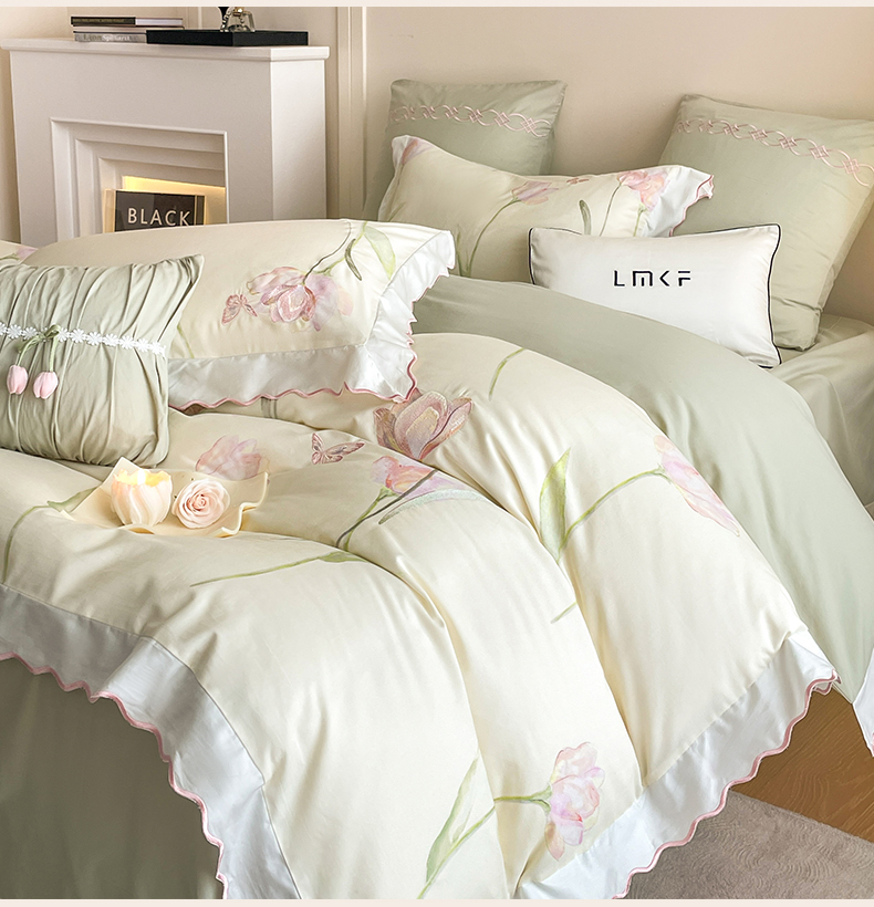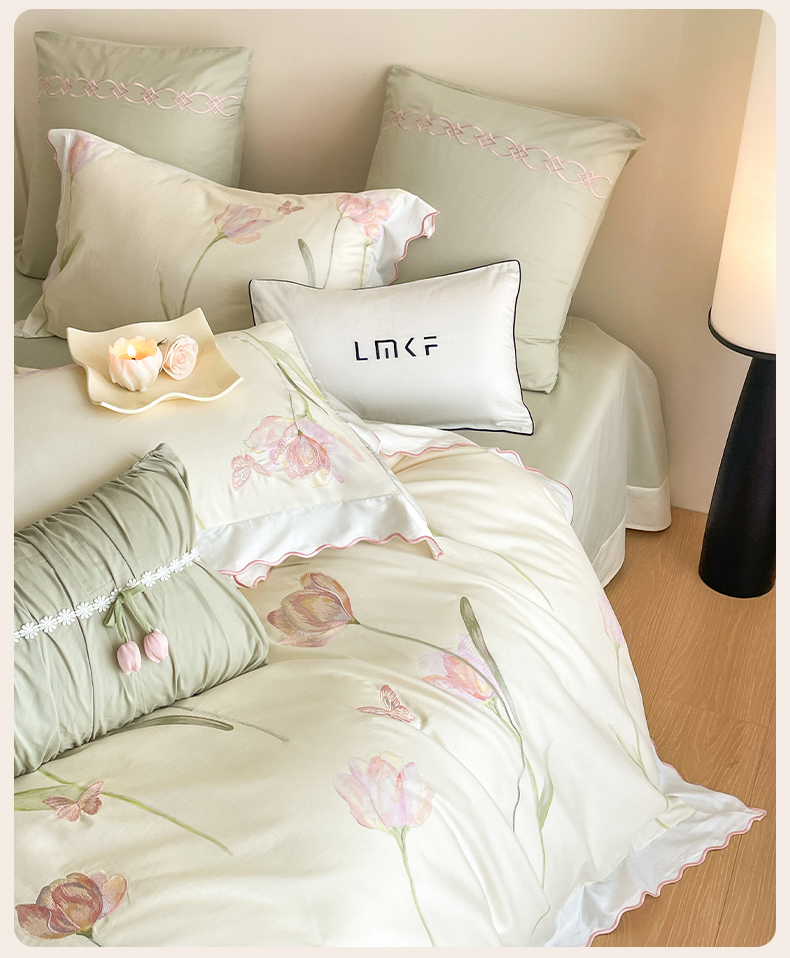 蓝米卡夫 2025秋冬-全棉60支磨毛印+绣-郁金香系列(礼盒包装)提供买家秀 郁金香-米