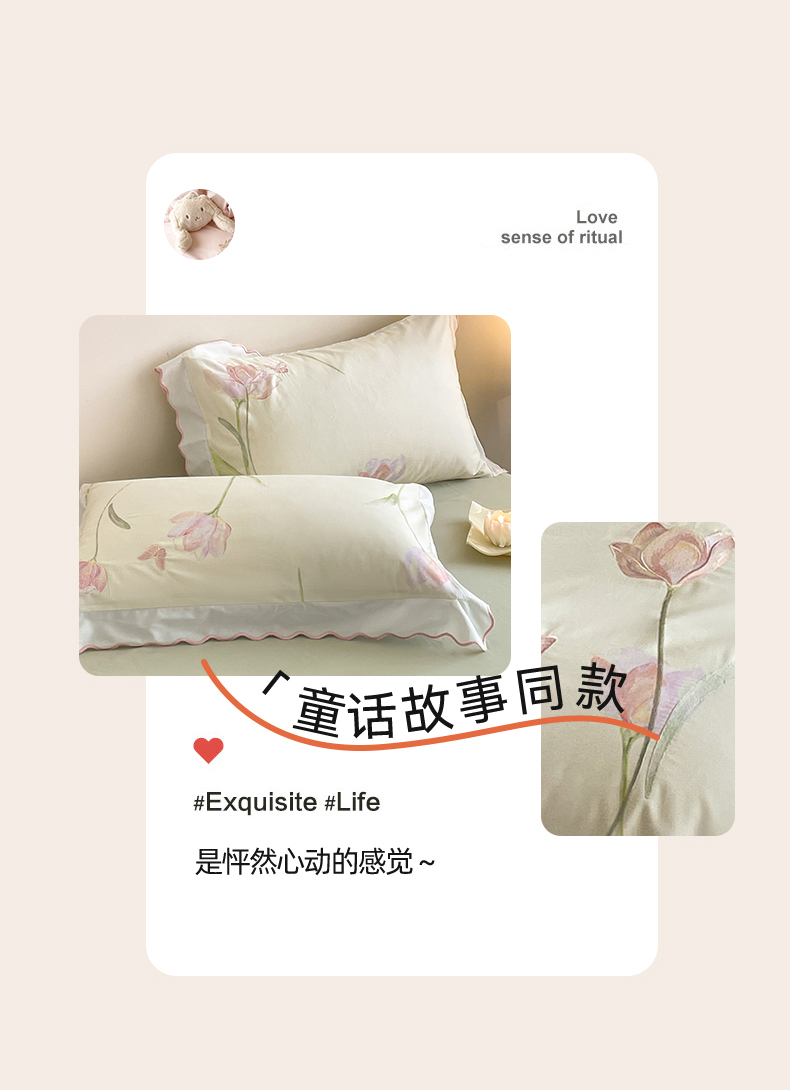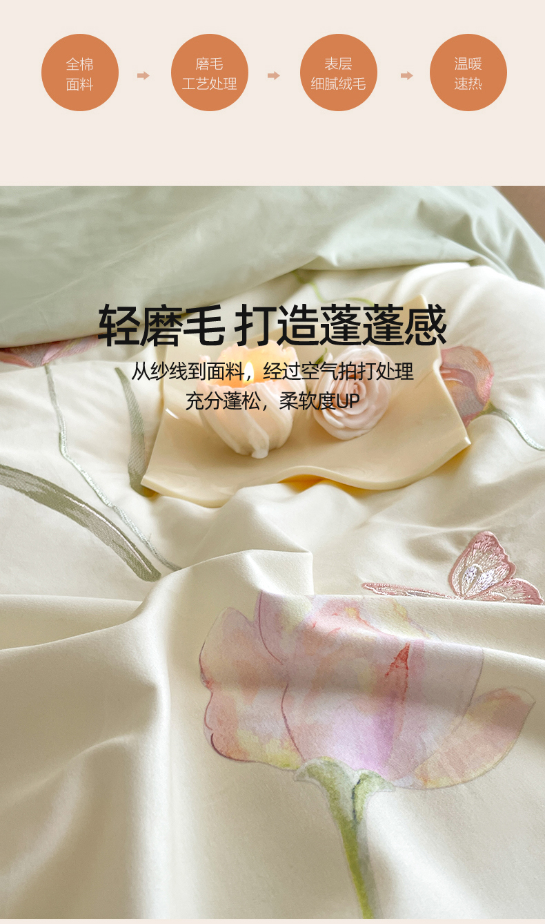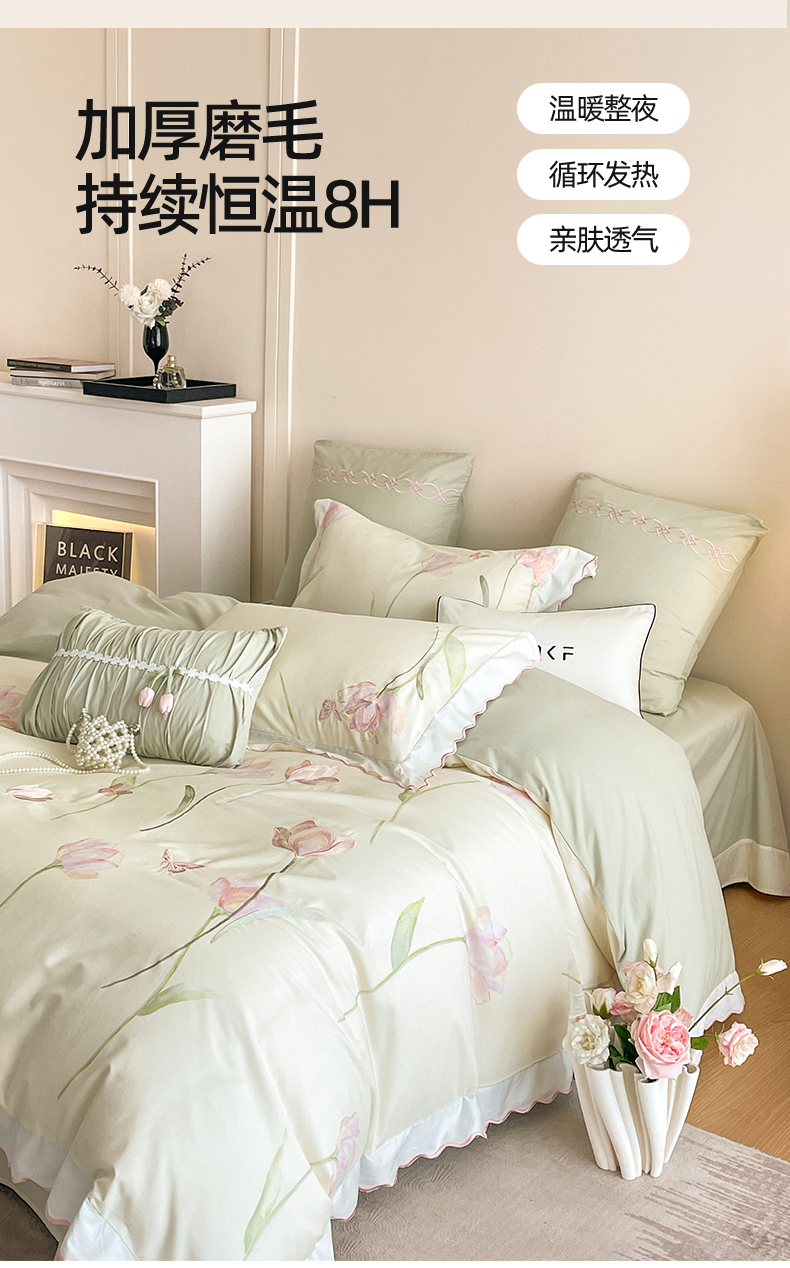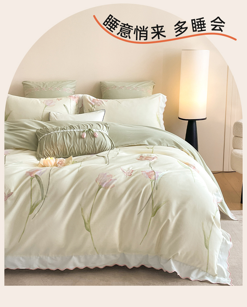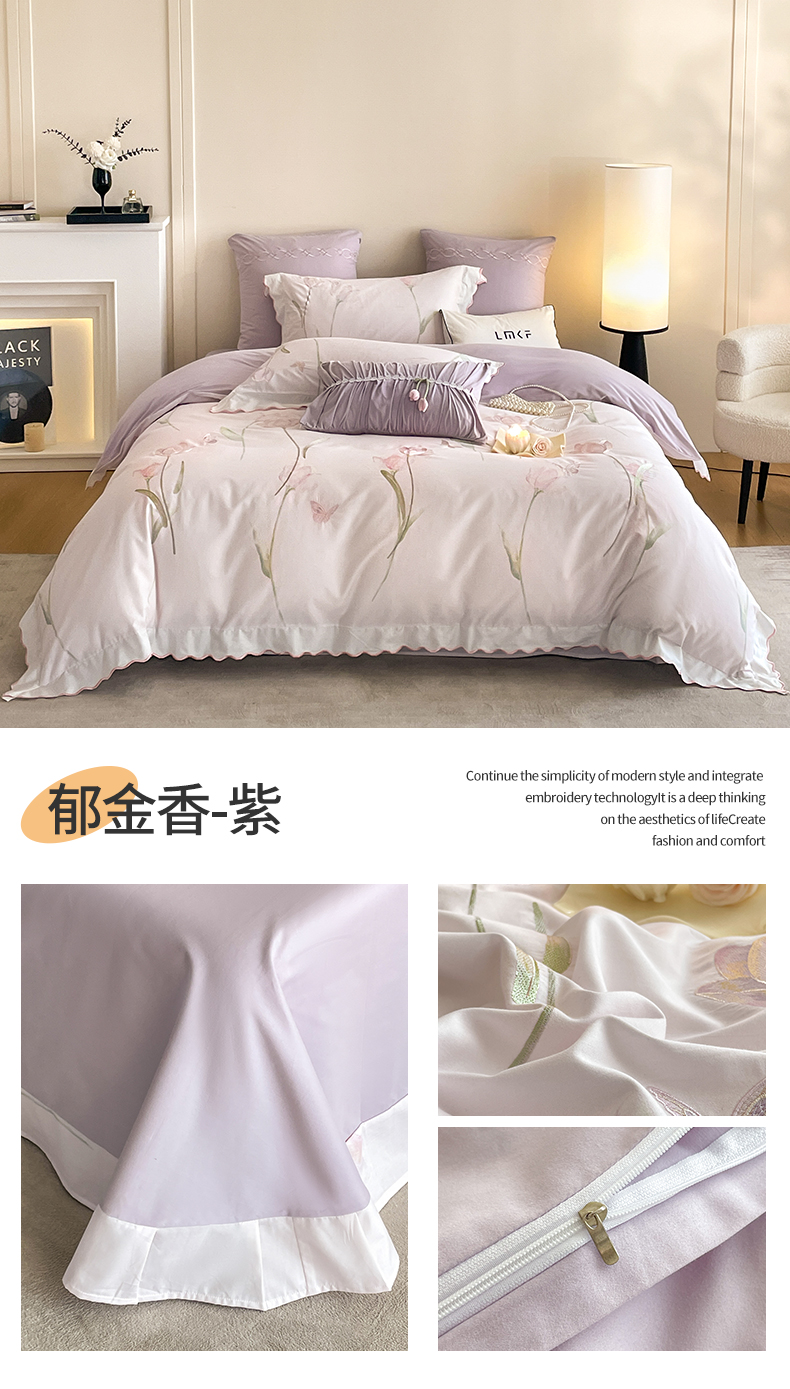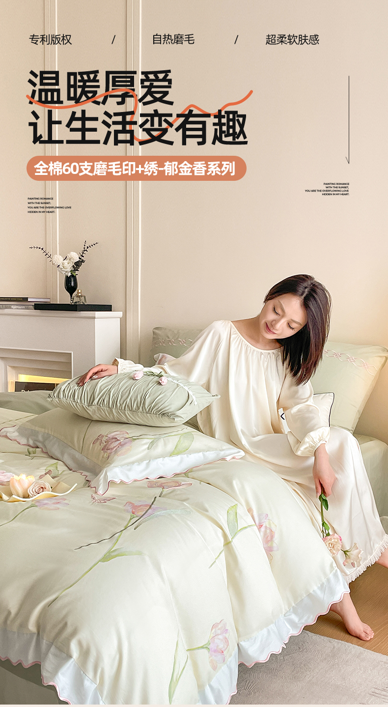 蓝米卡夫 2025秋冬-全棉60支磨毛印+绣-郁金香系列(礼盒包装)提供买家秀 郁金香-米