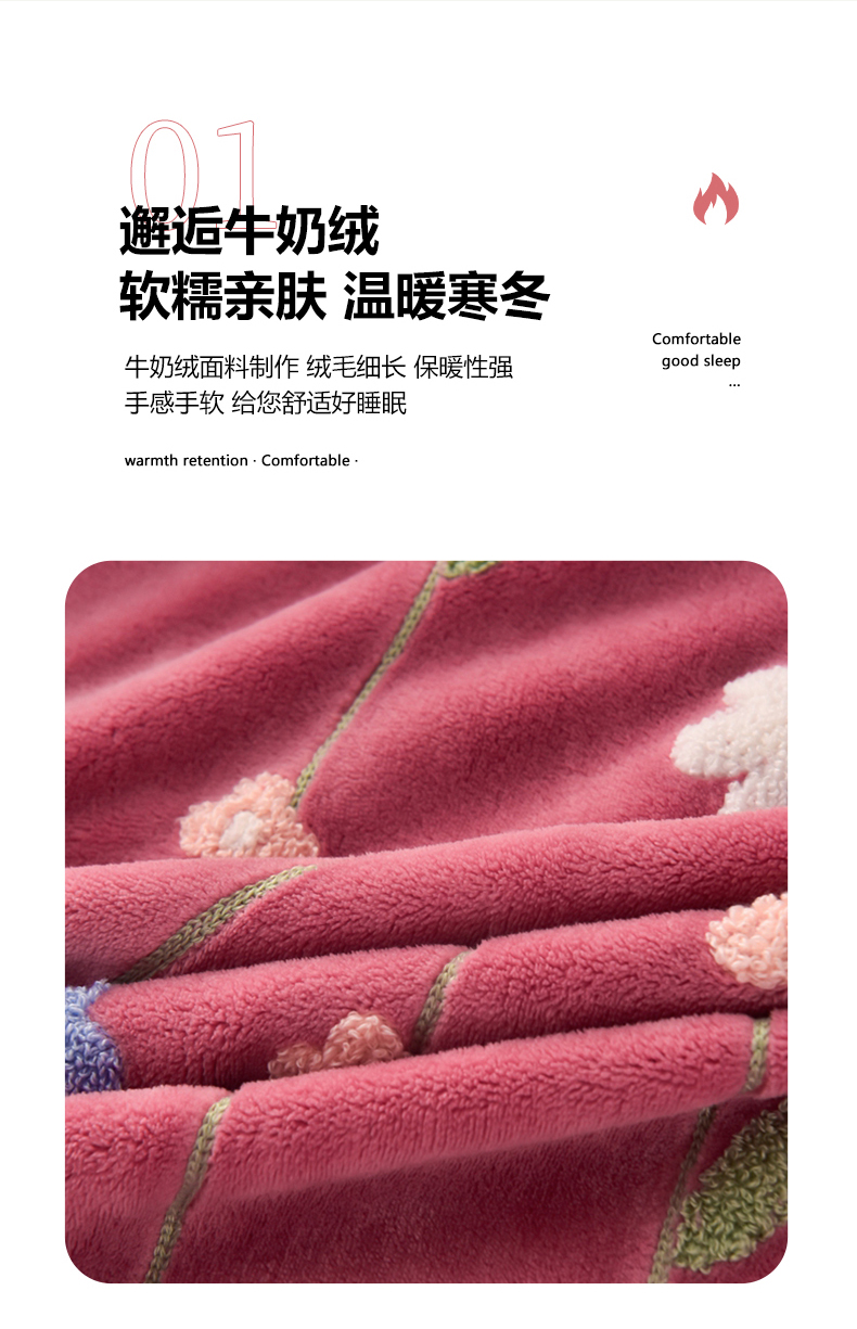 商品名称:畅畅家纺 2025新款A类亲肤舒适高克重牛奶绒绣花系列冬季四件套-繁花似锦 繁花似锦-豆沙+灰