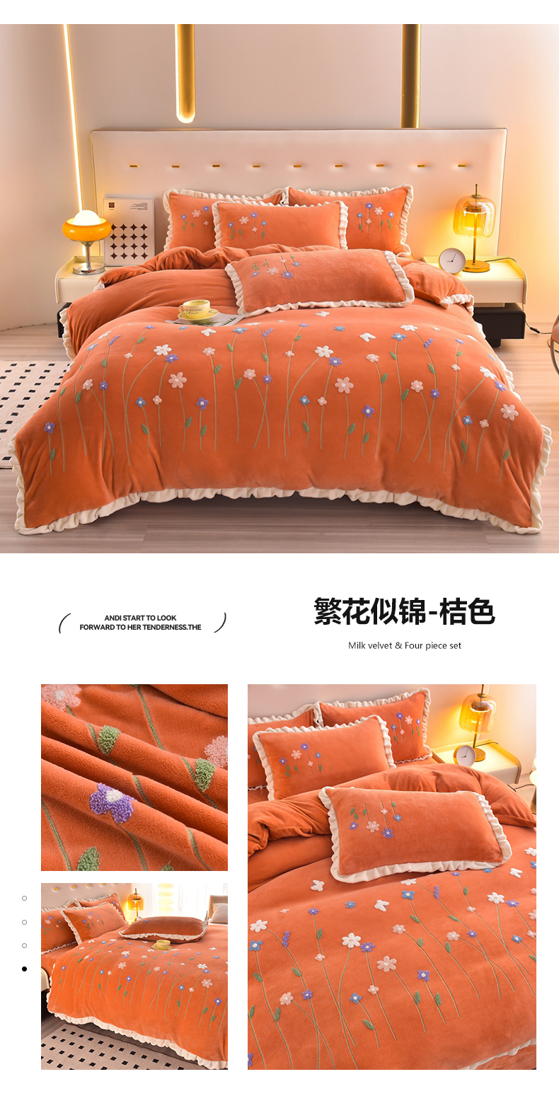 (总)畅畅家纺 2023牛奶绒刺绣花四件套金貂法莱宝宝水晶雪花绒四件套,花海 -高级灰,花海-草绿,花海-豆沙+灰,花海-粉+灰,花海-红豆沙,花海-湖蓝,花海-湖蓝+灰,花海-桔+灰,花海-桔色,花海-绿+灰,花海-奶白+粉,花海-樱花粉,花海-紫,花海-紫+灰