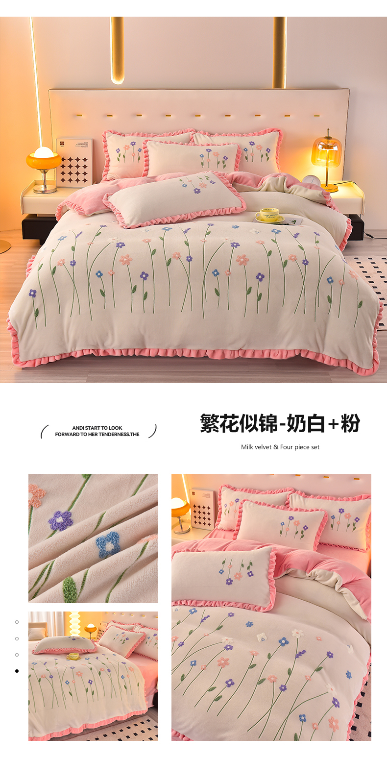 (总)畅畅2024新款加厚韩版花卉牛奶绒刺绣花四件套婴儿兔毛绒繁花似锦,繁花似锦-草绿,繁花似锦-草绿+灰,繁花似锦-豆沙+灰,繁花似锦-粉+灰,繁花似锦-高级灰,繁花似锦-红豆沙,繁花似锦-湖蓝,繁花似锦-湖蓝+灰,繁花似锦-桔+灰,繁花似锦-奶白+粉,繁花似锦-樱桃粉