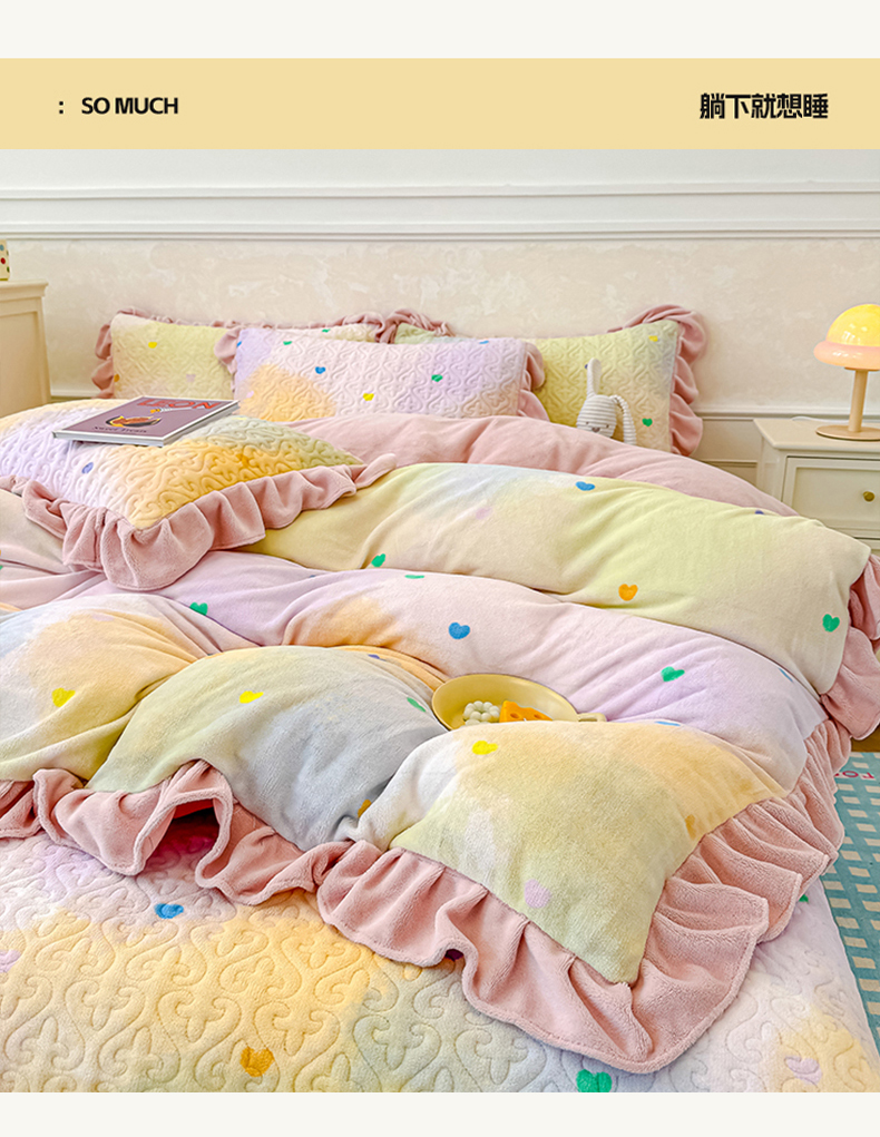 • 91家纺网 家纺一手货源 找家纺 归属 2025新款牛奶绒花边床盖三件套系列 绿韵蝴蝶结