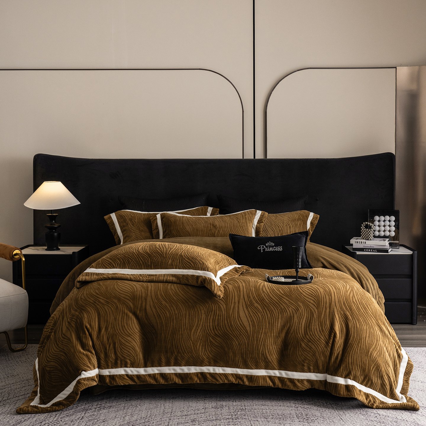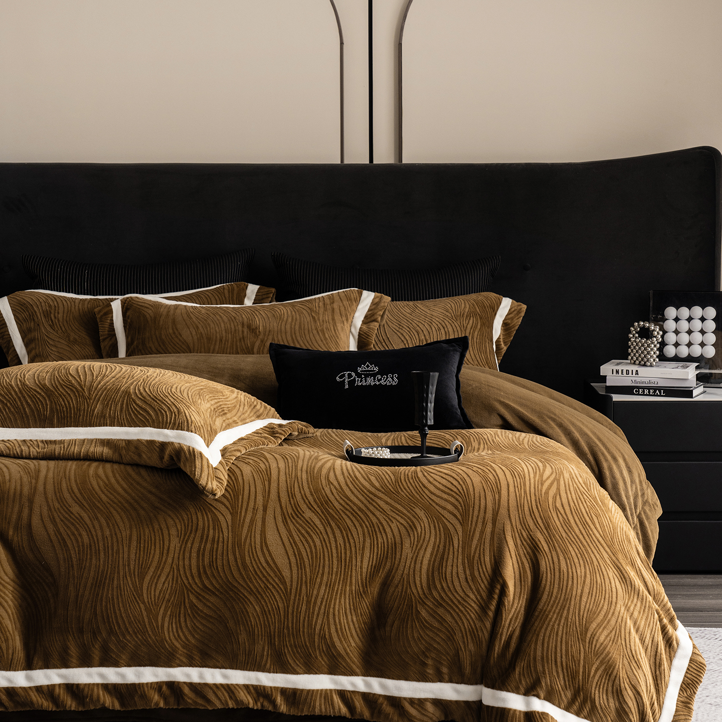 商品名称:瑞雪家居 2025新款全消光雕花牛奶绒系列-波流 波流-古铜咖