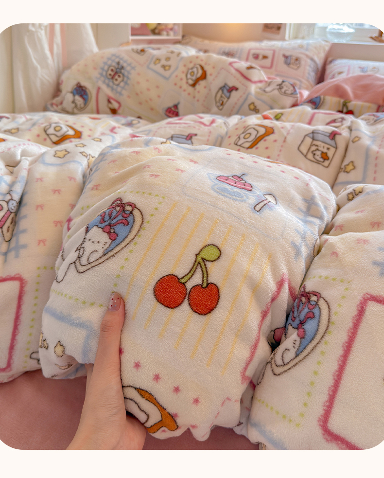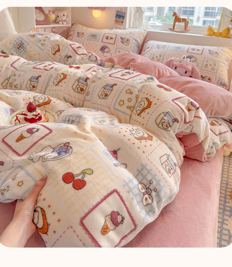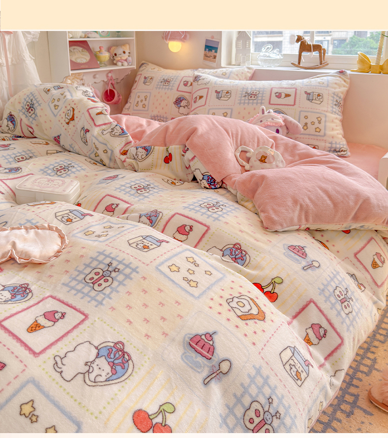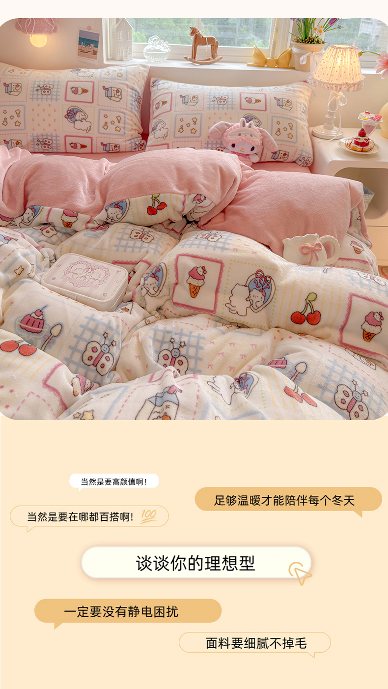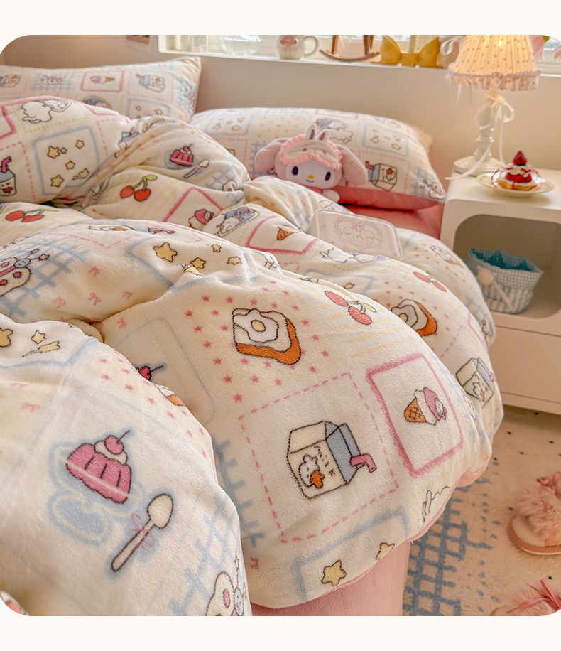 当前位置: 91家纺网 > 商品网购 > 床品套件 > 四件套 > 牛奶绒四件套 > 罗亿家纺 2025新款ins小清新少女奶油卡通可爱加厚200克牛奶绒四件套【3.6公斤】(小红书推荐) 甜品屋